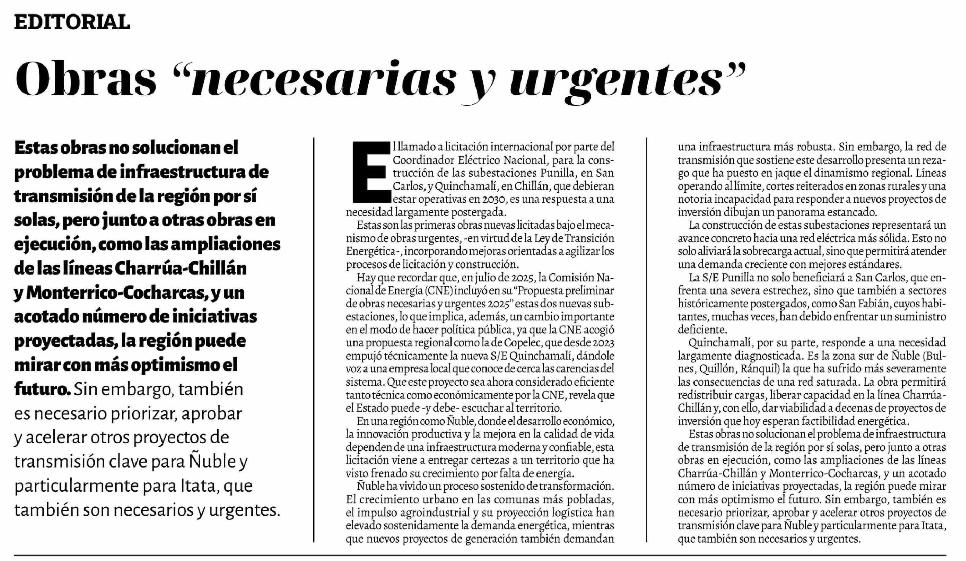 | Título: | Editorial: Obras "necesarias y urgentes" |