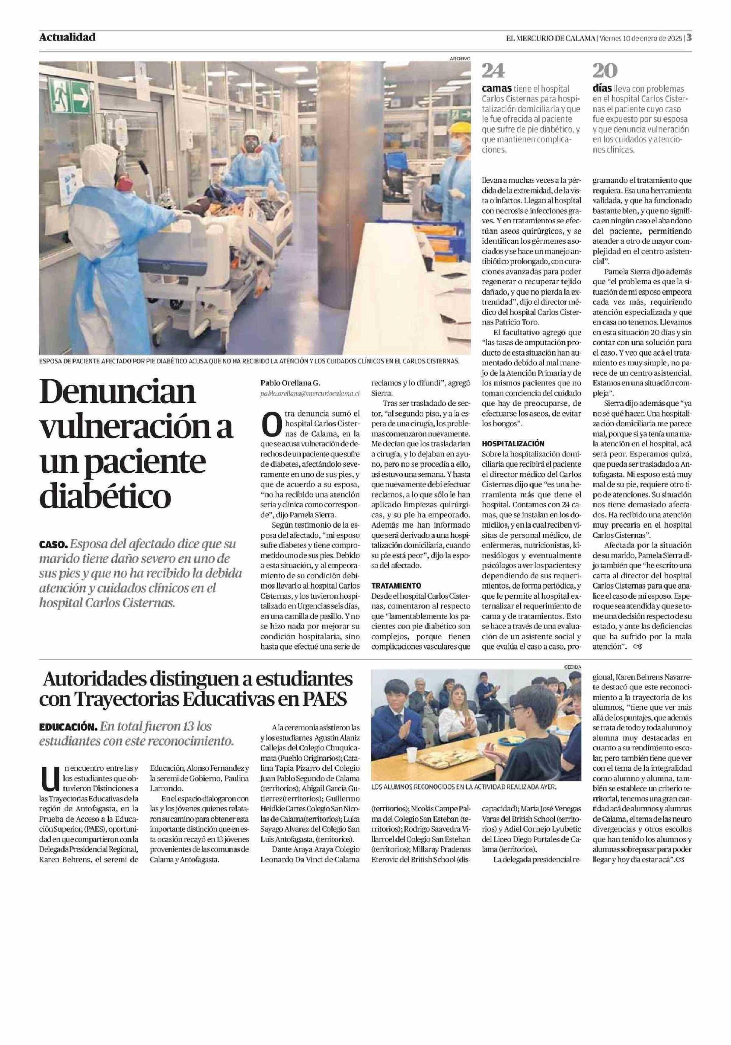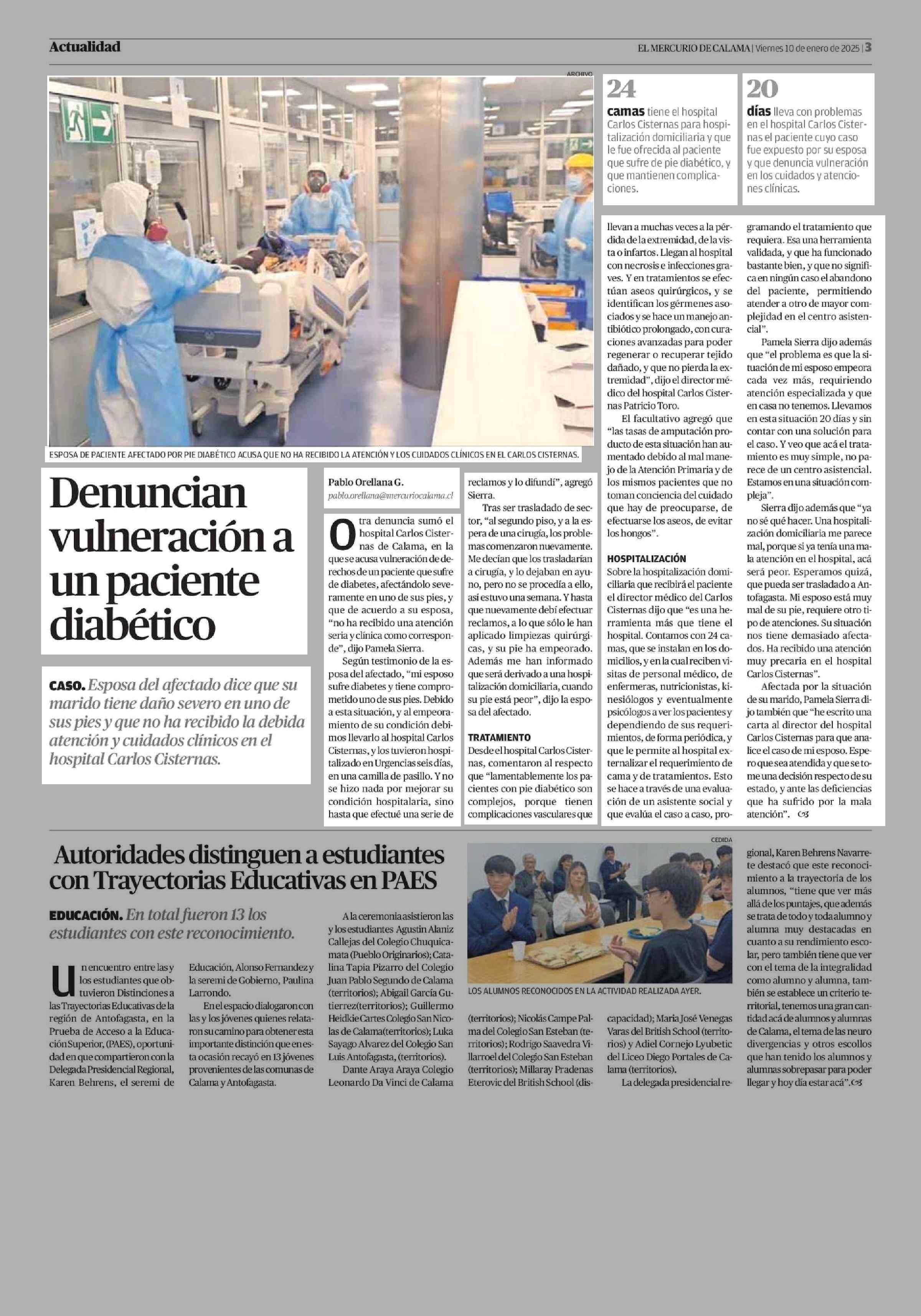 Denuncian vulneración a un paciente diabético 10-01-2025 El Mercurio de Calama |
