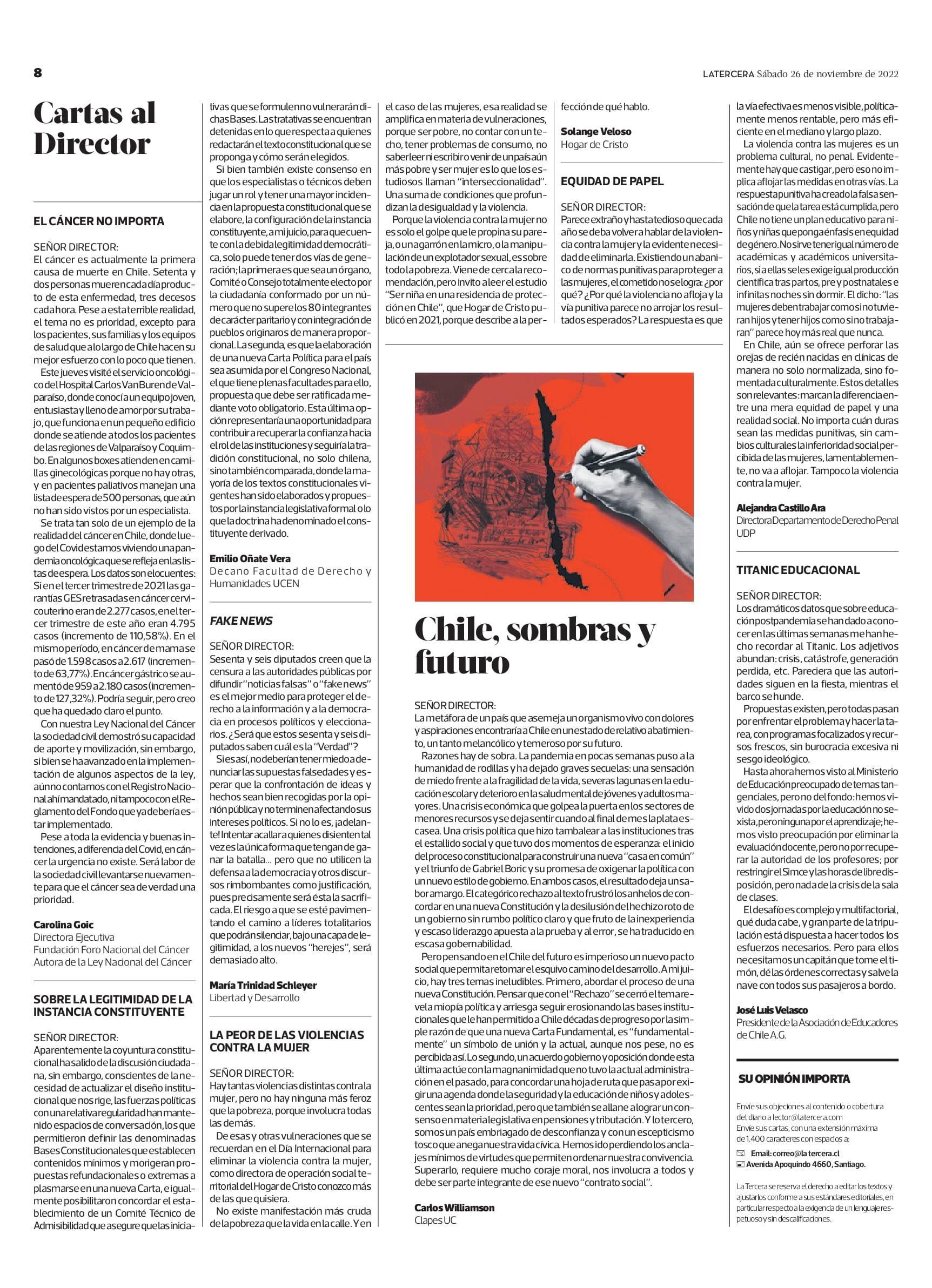 Fecha: 26-11-2022 Sector: Opinión - Cartas Región: Región Metropolitana de Santiago