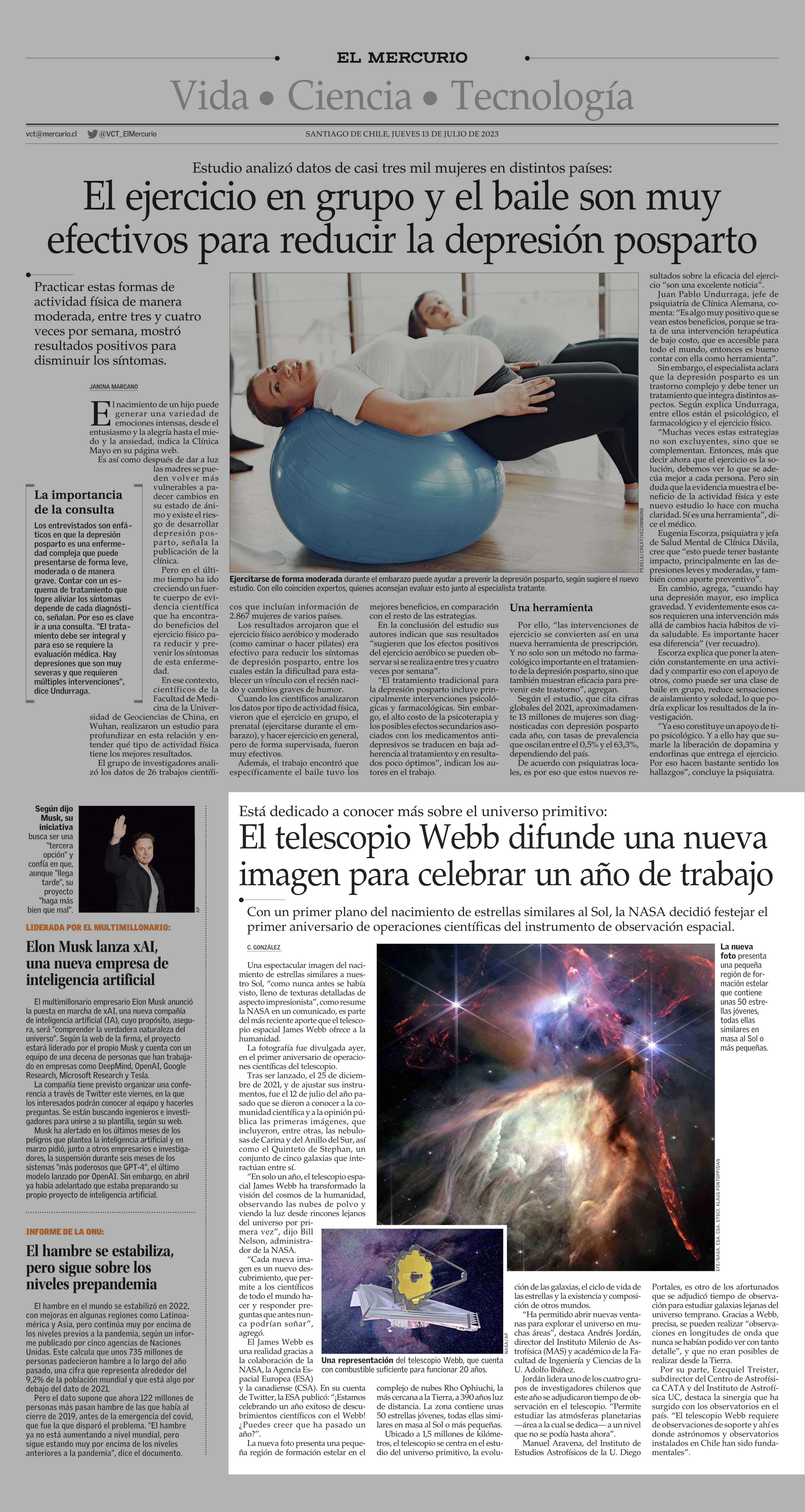 El telescopio Webb difunde una nueva imagen para celebrar un año de trabajo 13-07-2023 El Mercurio |