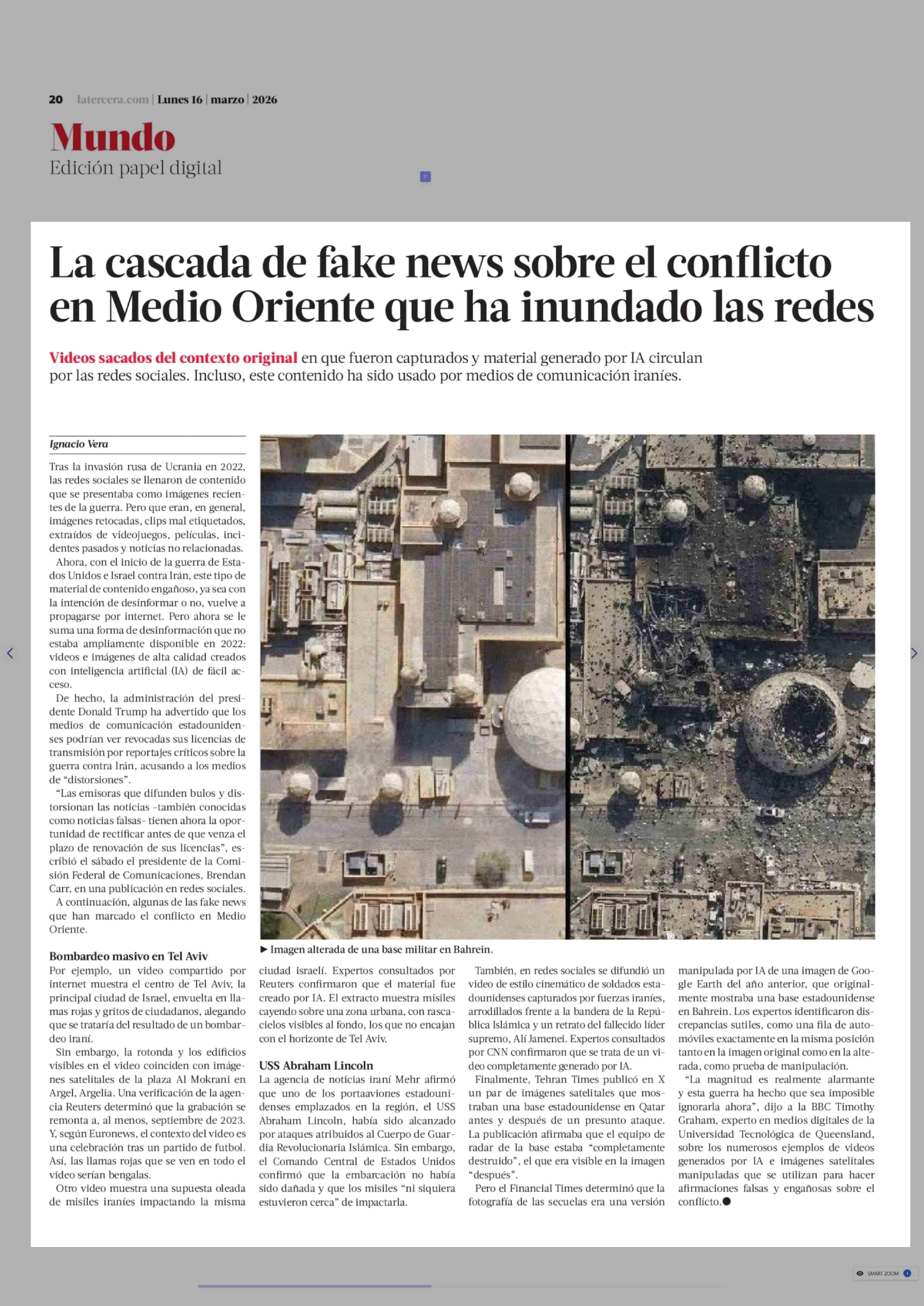 La cascada de fake news sobre el conflicto en Medio Oriente que ha inundado las redes 16-03-2026 La Tercera |