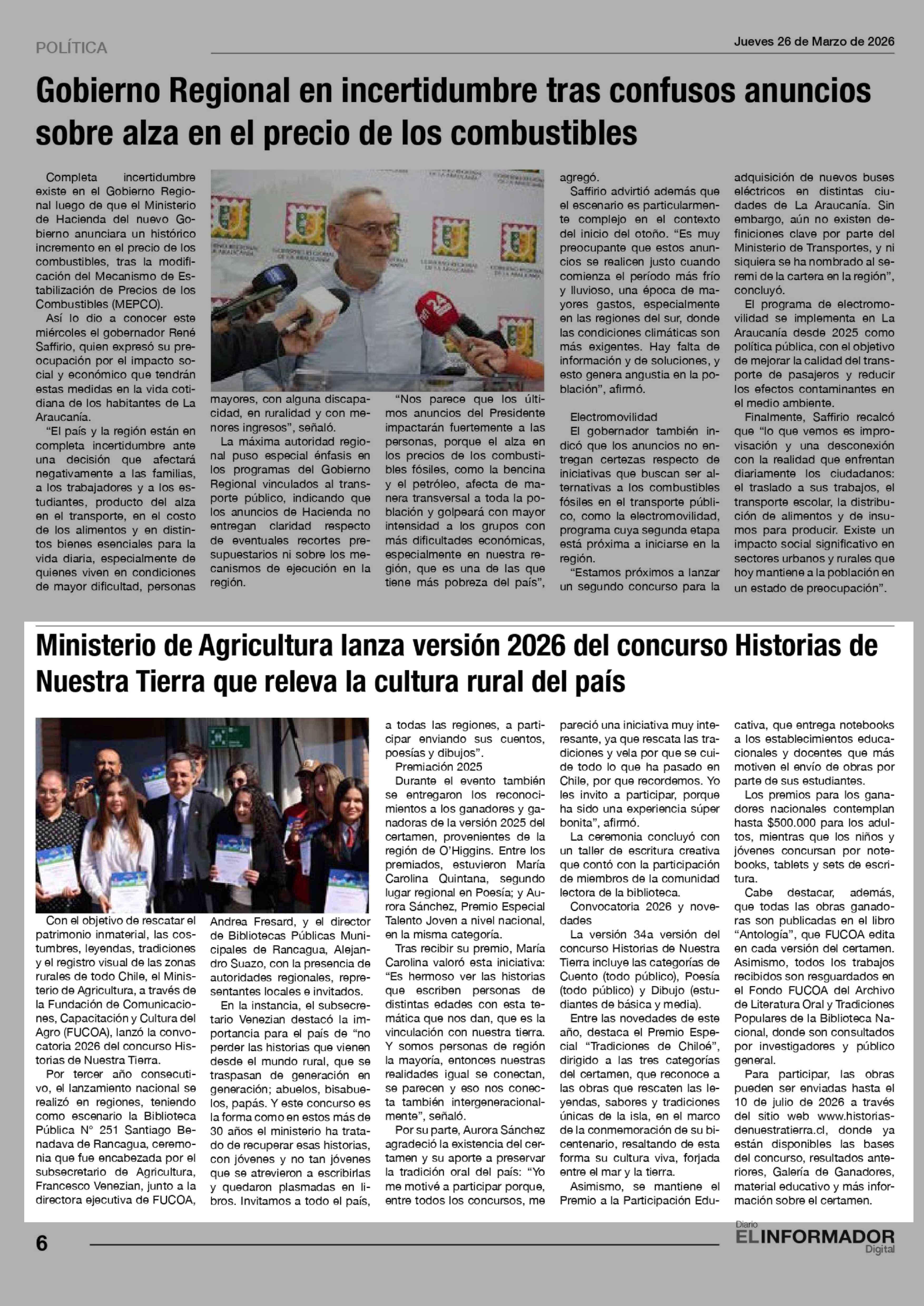 Ministerio de Agricultura lanza versión 2026 del concurso Historias de Nuestra Tierra que releva la cultura rural del país 26-03-2026 El Informador |