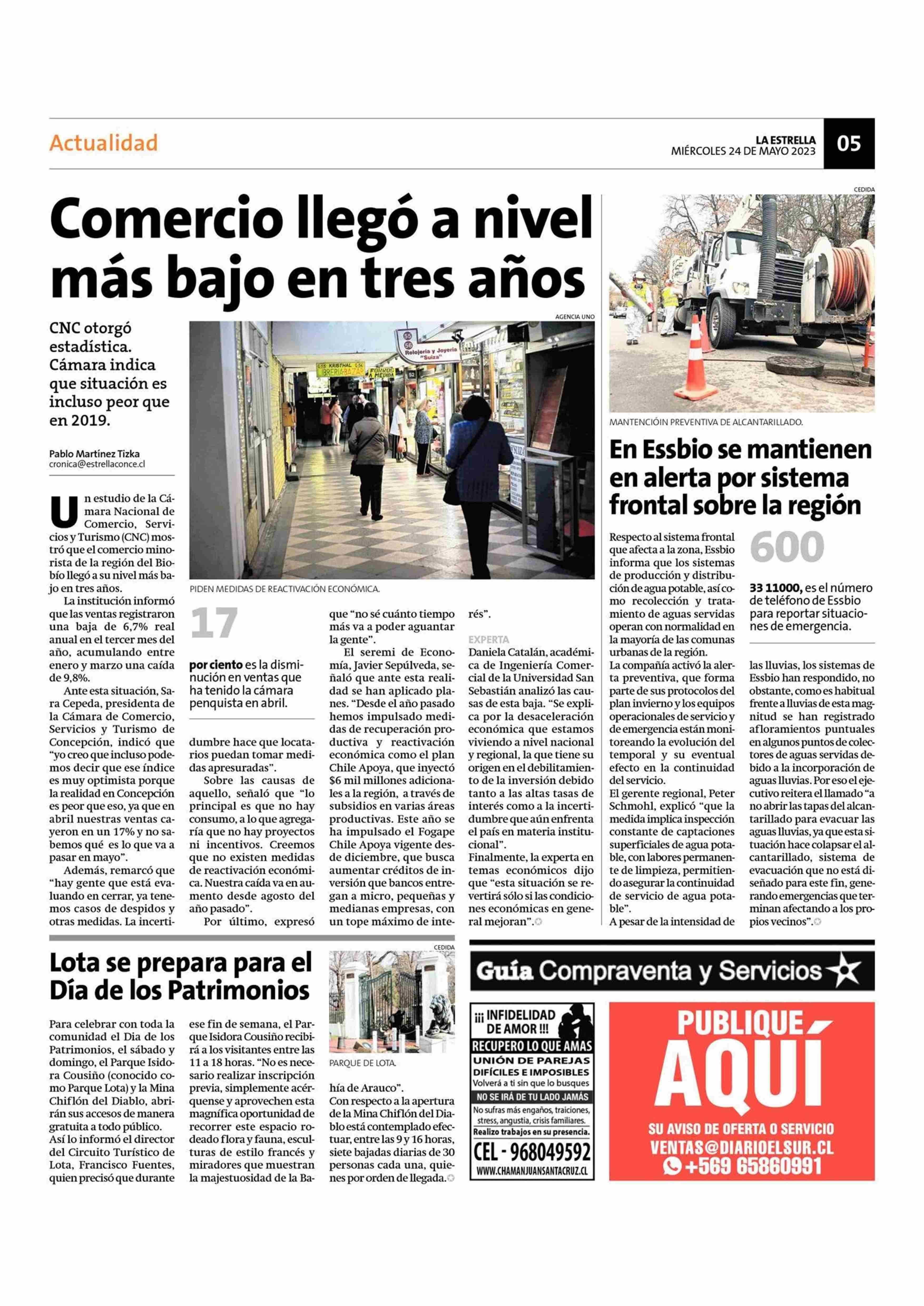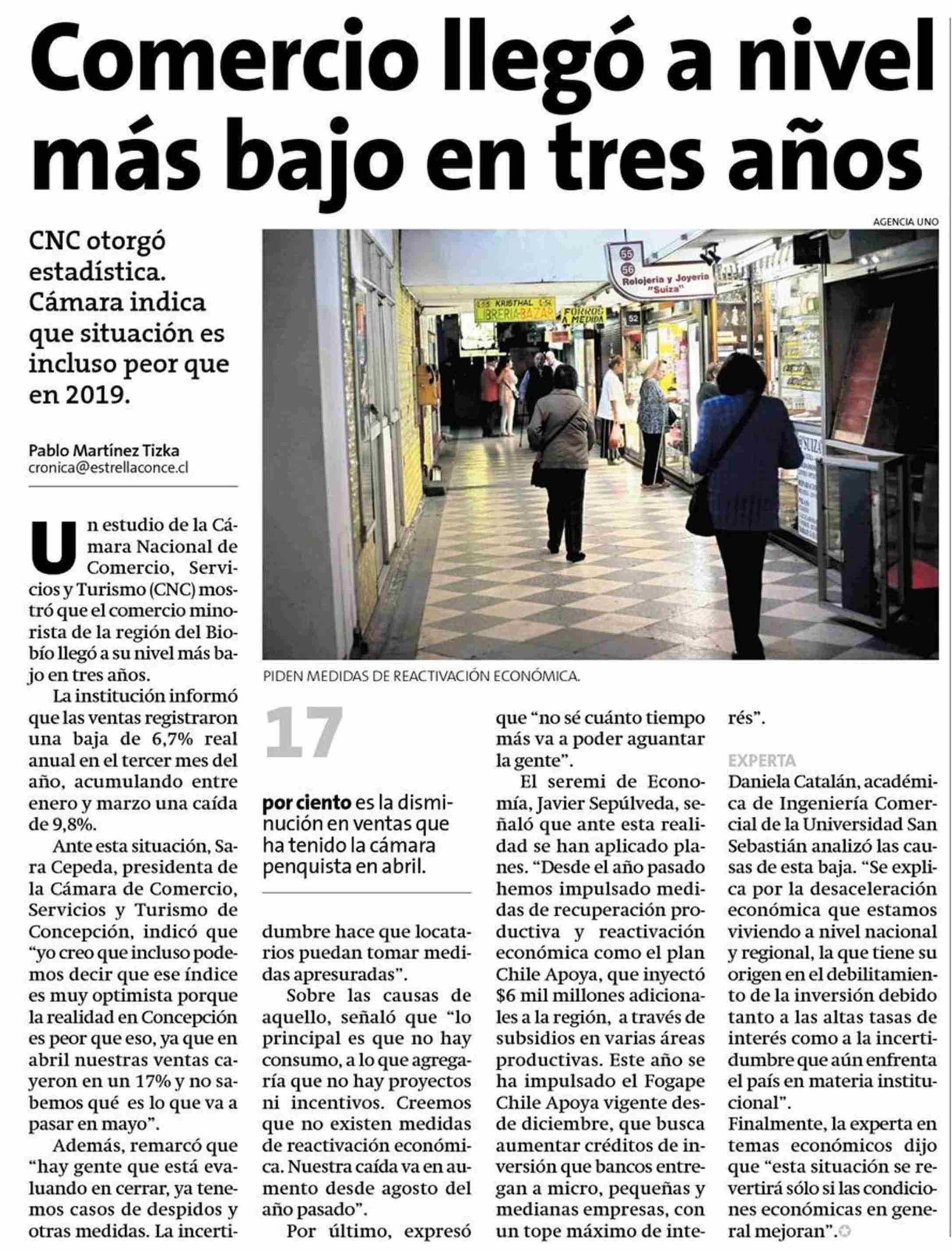 Comercio llegó a nivel más bajo en tres años 24-05-2023 La Estrella de Concepción |