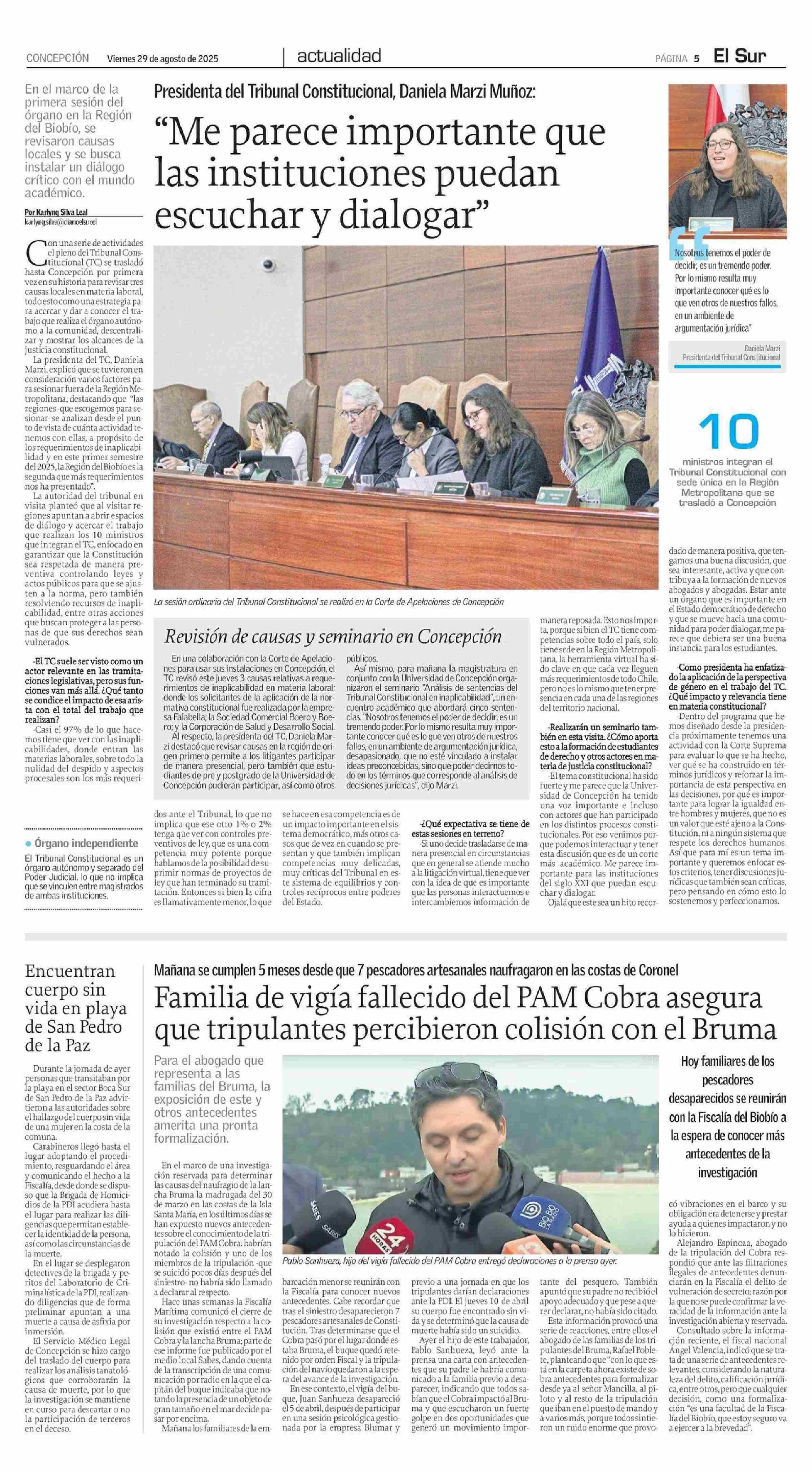 "Me parece importante que las instituciones puedan escuchar y dialogar" 29-08-2025 El Sur |