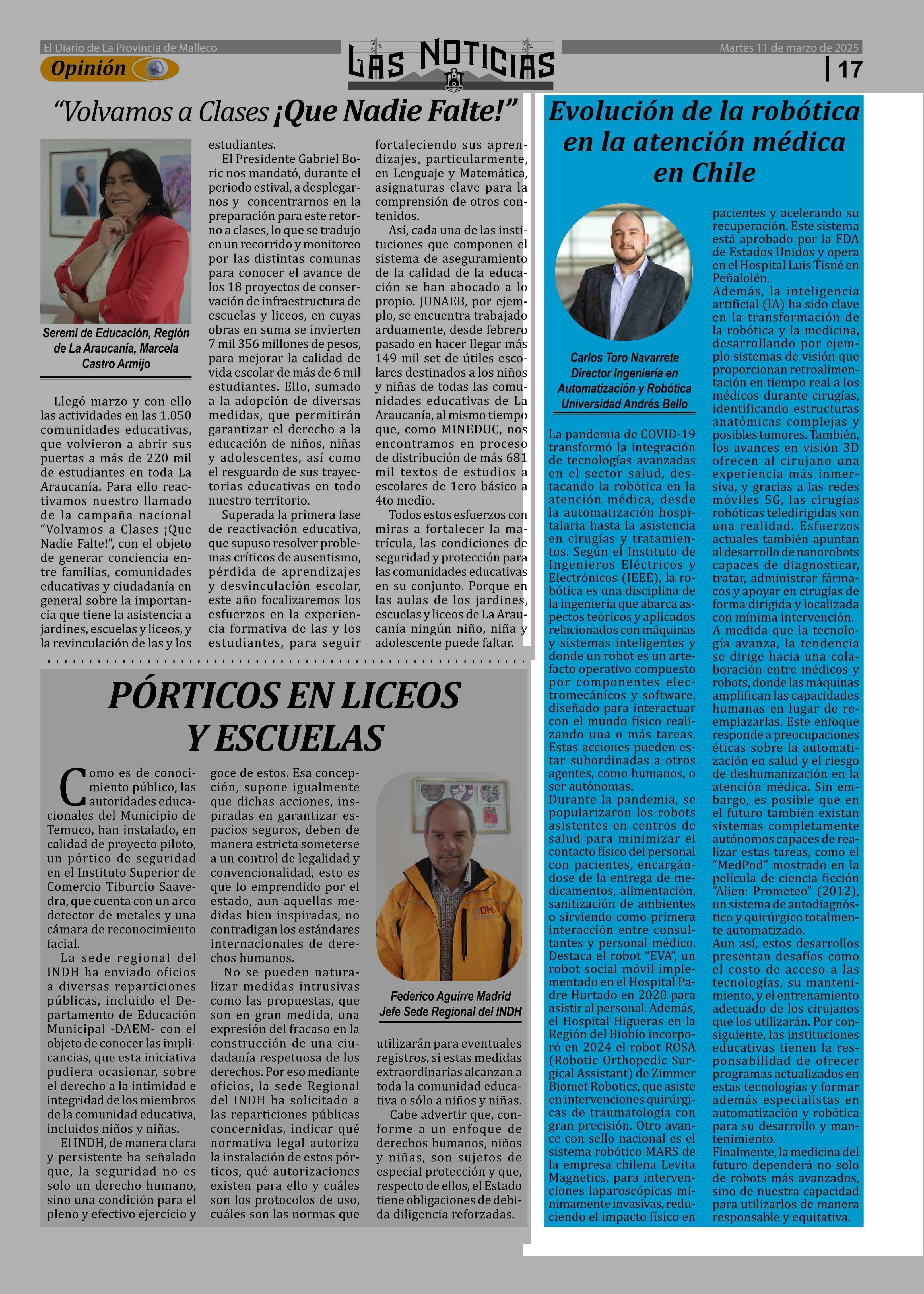 COLUMNAS DE OPINIÓN: Evolución de la robótica en la atención médica Chile 11-03-2025 Las Noticias |