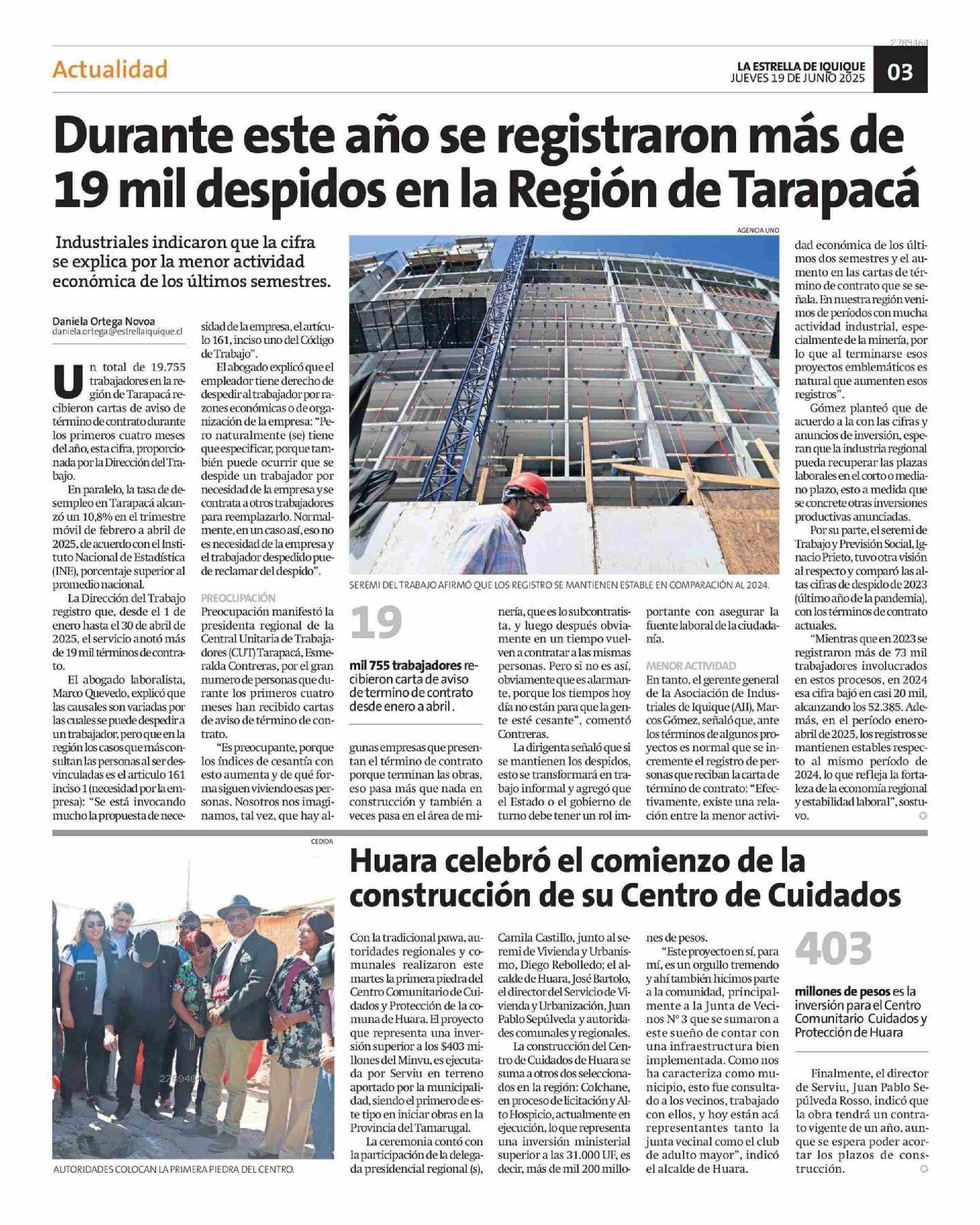 Huara celebró el comienzo de la construcción de su Centro de Cuidados 19-06-2025 La Estrella de Iquique |