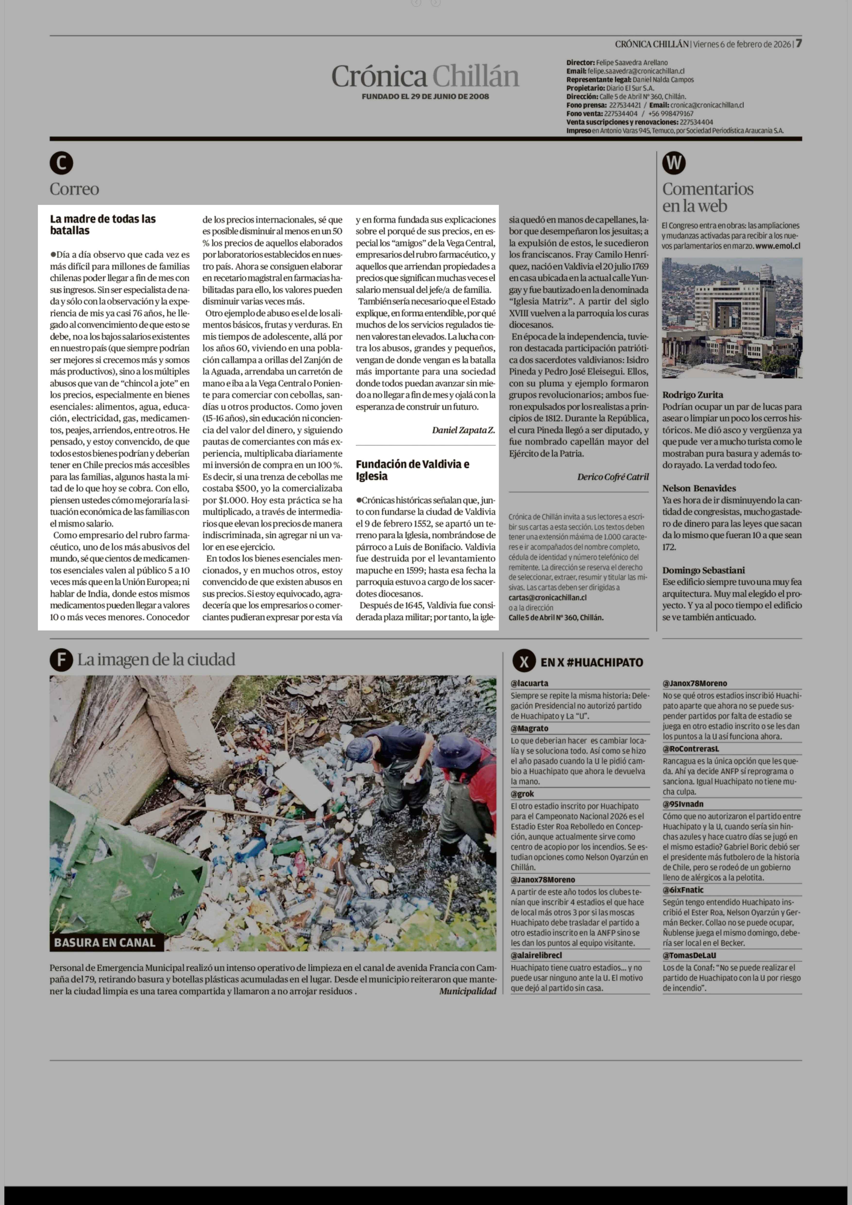 CARTAS: La madre de todas las batallas 06-02-2026 Crónica de Chillán |