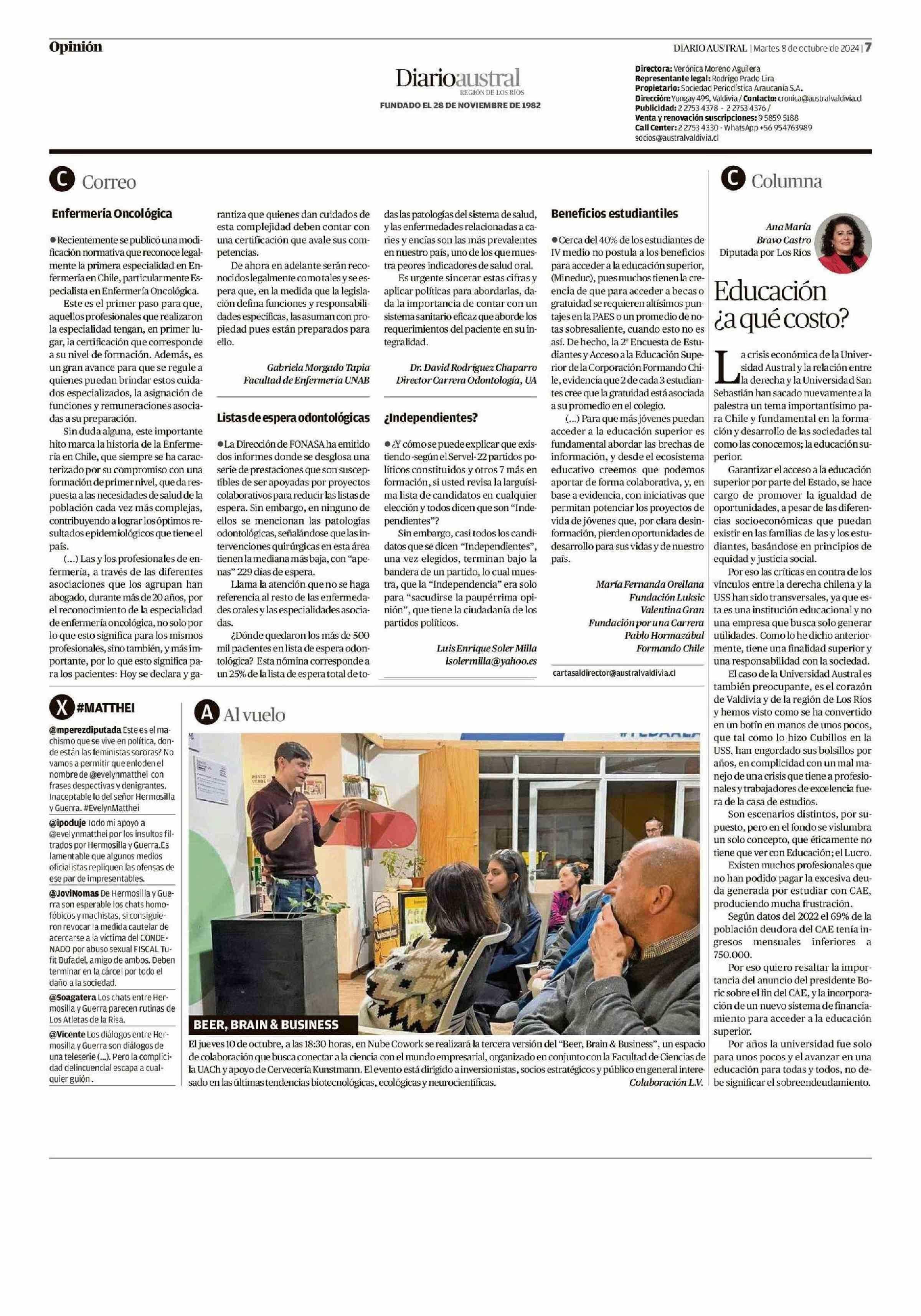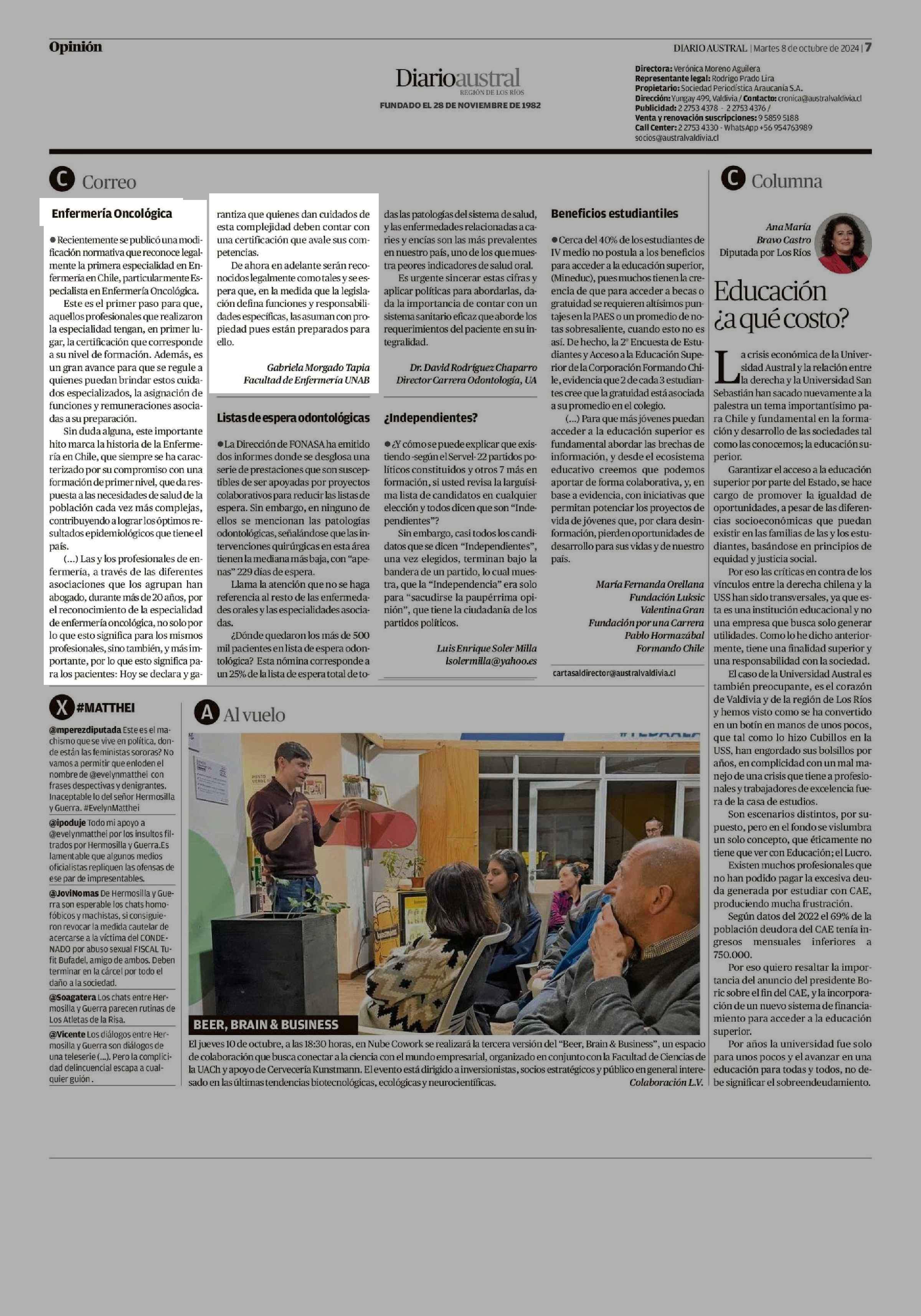 Enfermería Oncológica 08-10-2024 Diario Austral Región de Los Ríos |