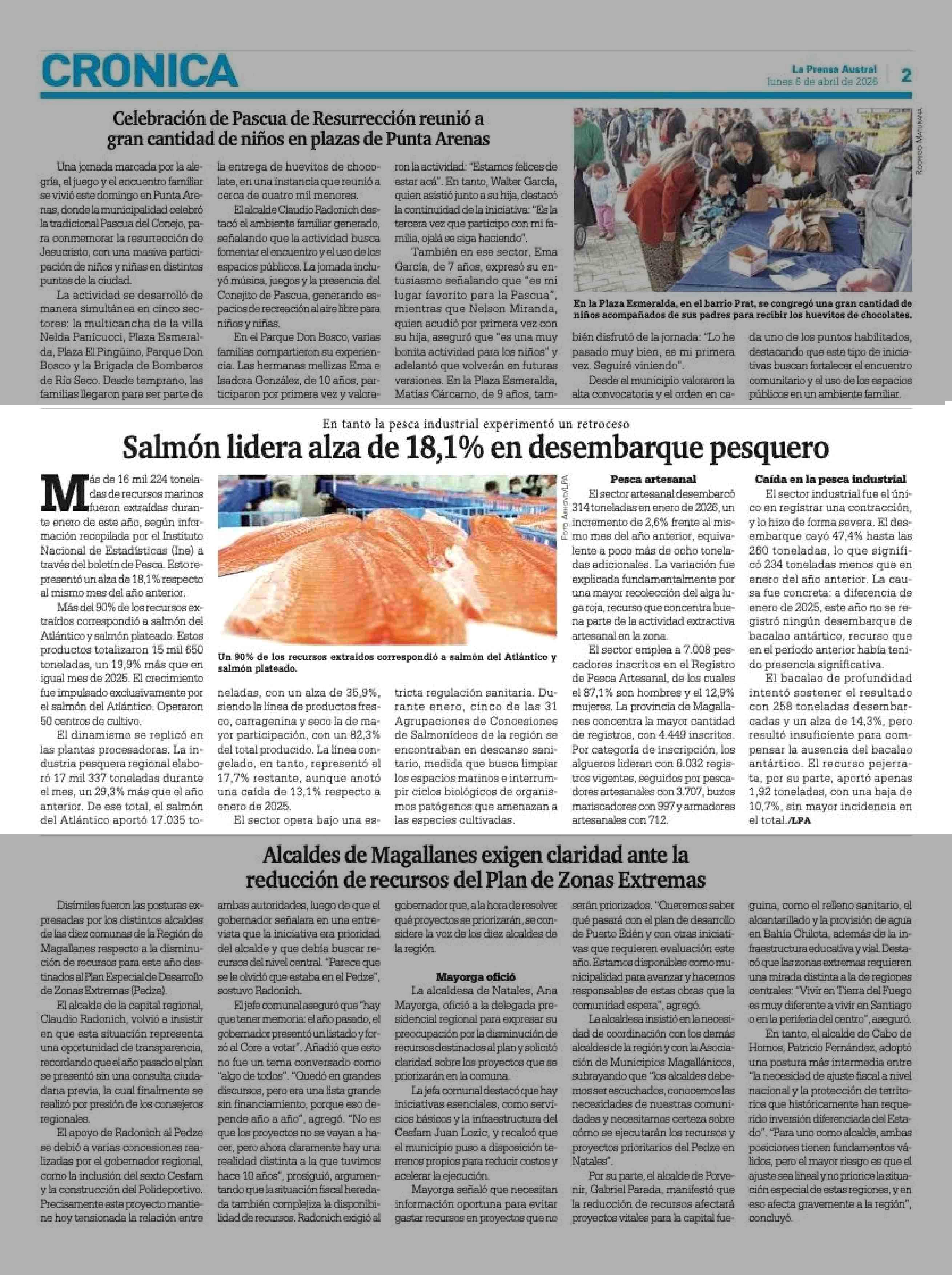 Salmón lidera alza de 18,1% en desembarque pesquero 06-04-2026 La Prensa Austral |