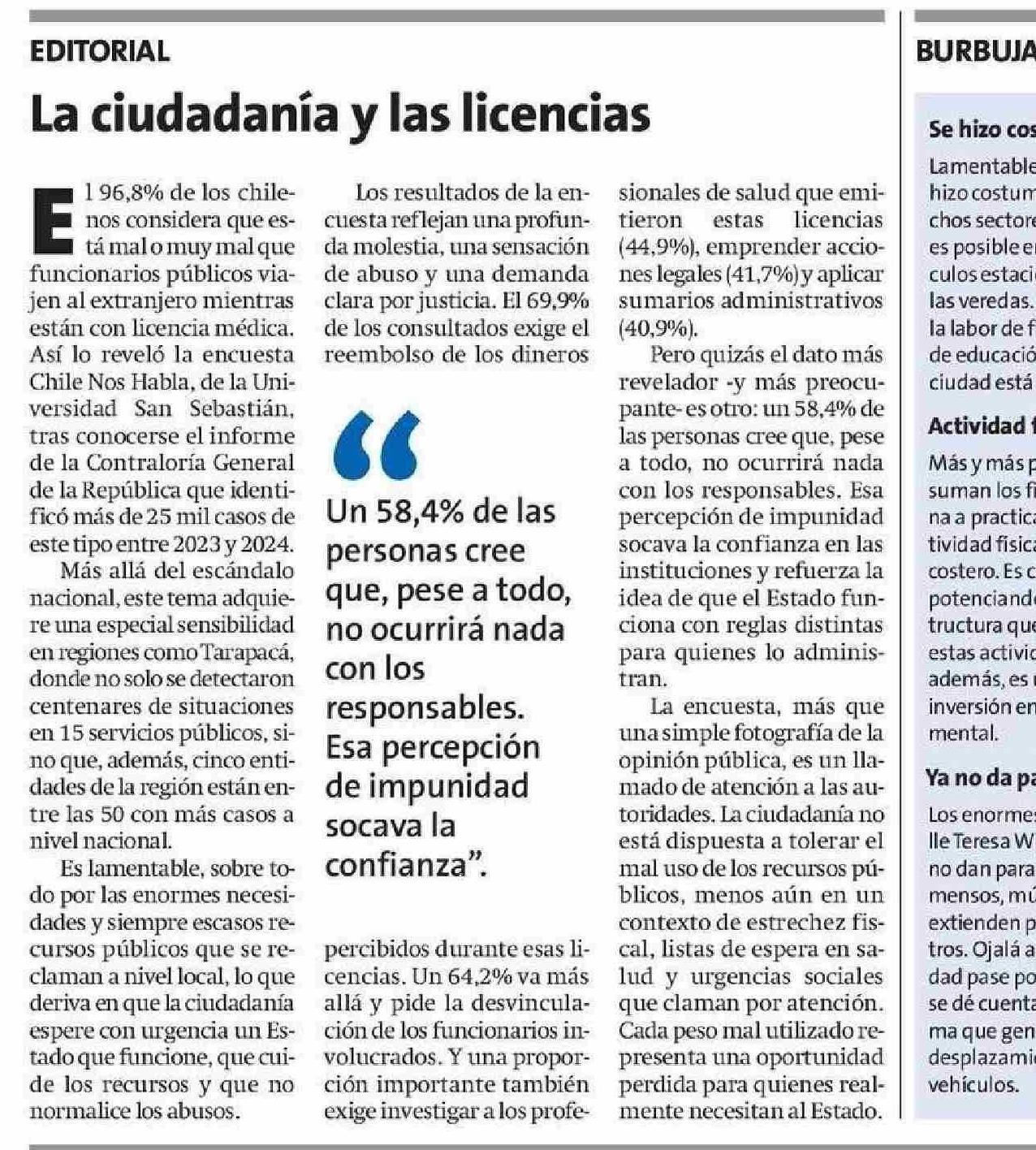 Editorial: La ciudadanía y las licencias 02-06-2025 La Estrella de Iquique |