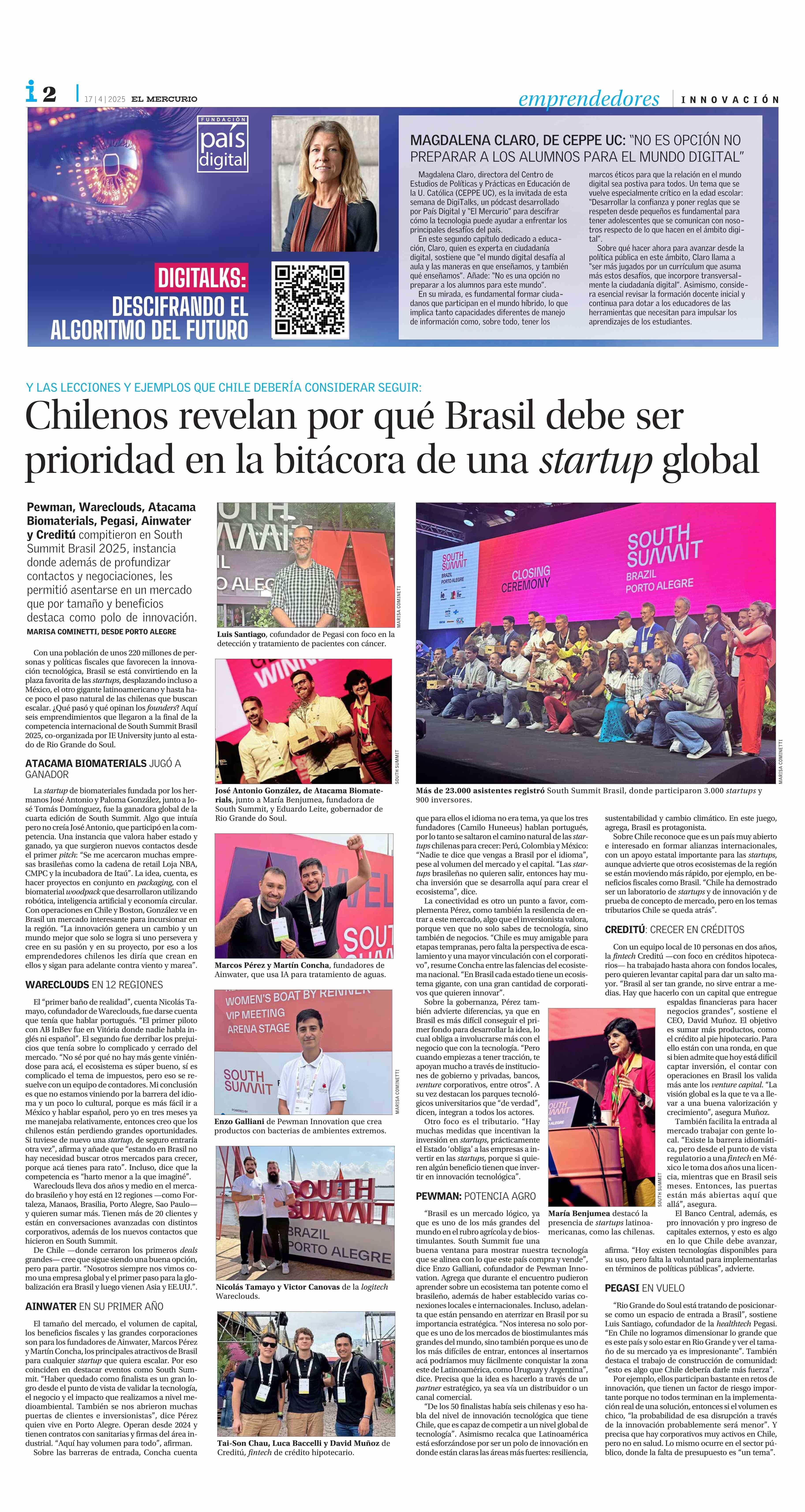 MAGDALENA CLARO, DE CEPPE UC: “NO ES OPCIÓN NO PREPARAR A LOS ALUMNOS PARA EL MUNDO DIGITAL” 17-04-2025 El Mercurio |