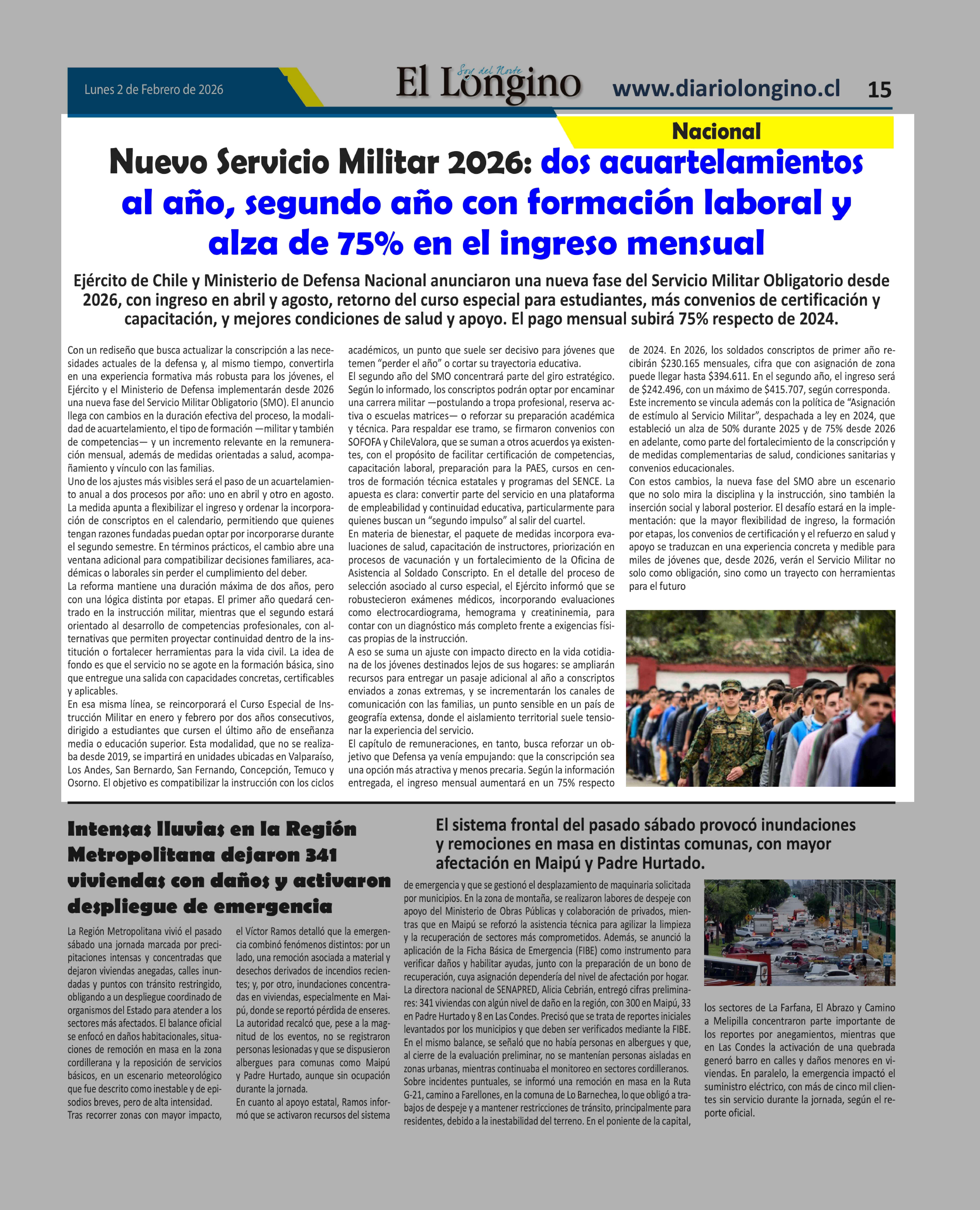 | Título: | Nuevo Servicio Militar 2026: dos acuartelamientos al año, segundo año con formación laboral y alza de 75% en el ingreso mensual |