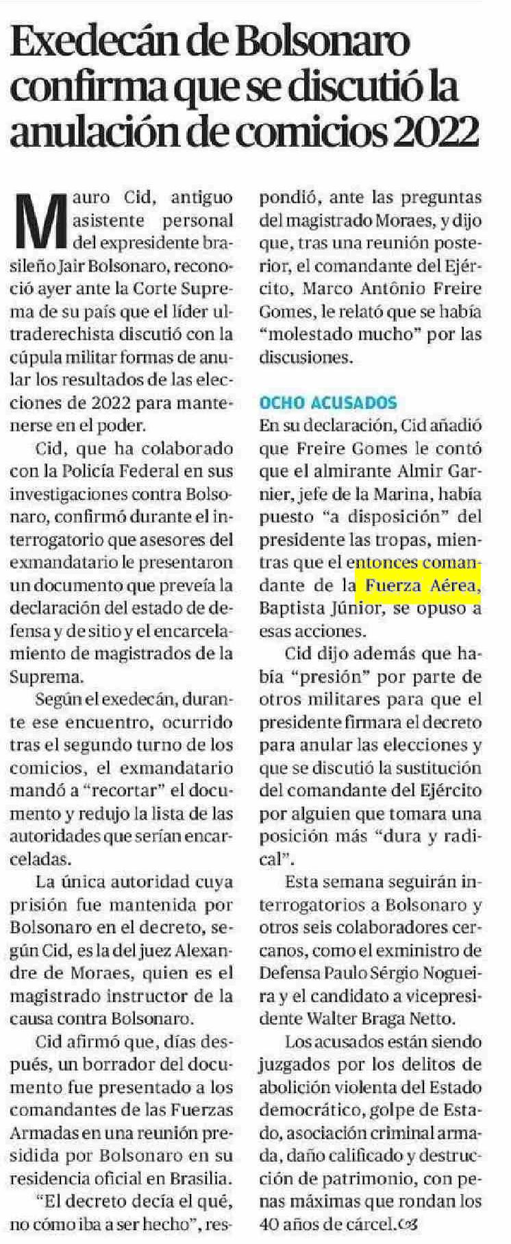 Exedecán de Bolsonaro confirma que se discutió la anulación de comicios 2022 10-06-2025 El Diario de Atacama |