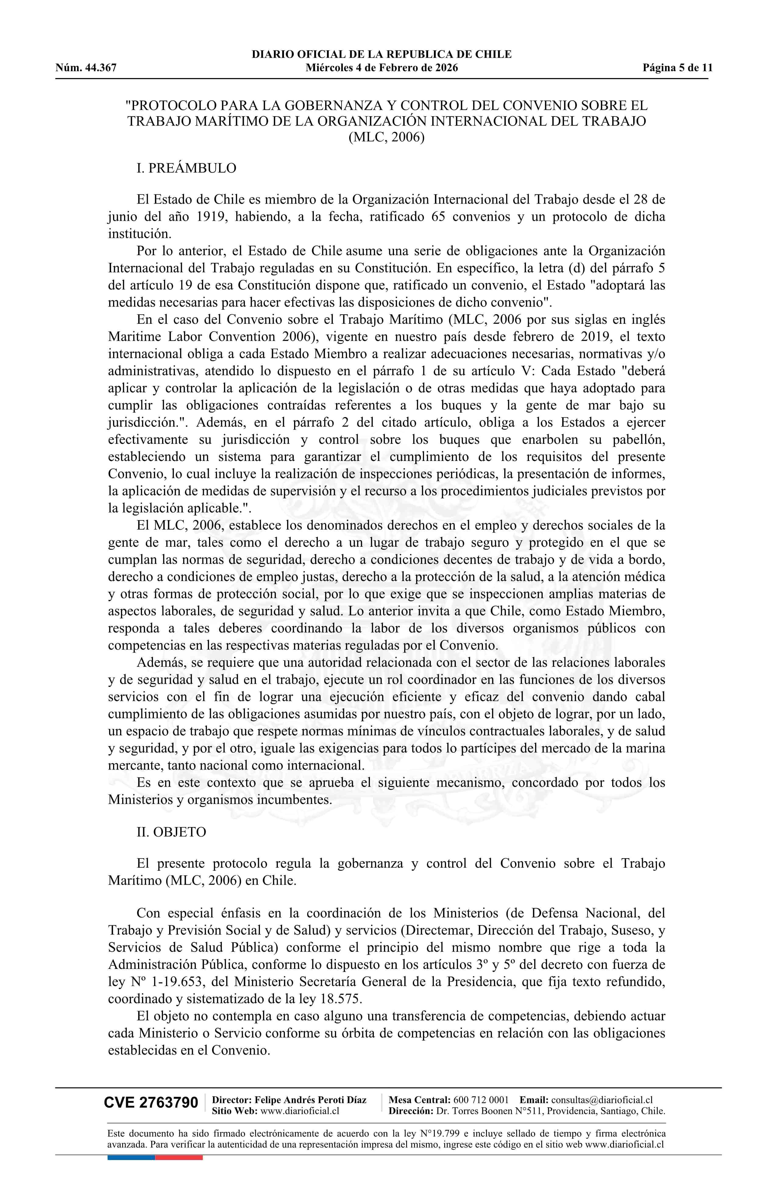 Resolución exenta número 1.575, de 2025.- Aprueba protocolo de coordinación entre los ministerios y organismos que indica, para gobernanza y control del Convenio sobre el Trabajo Marítimo de la Organización Internacional del Trabajo (MLC, 2006)