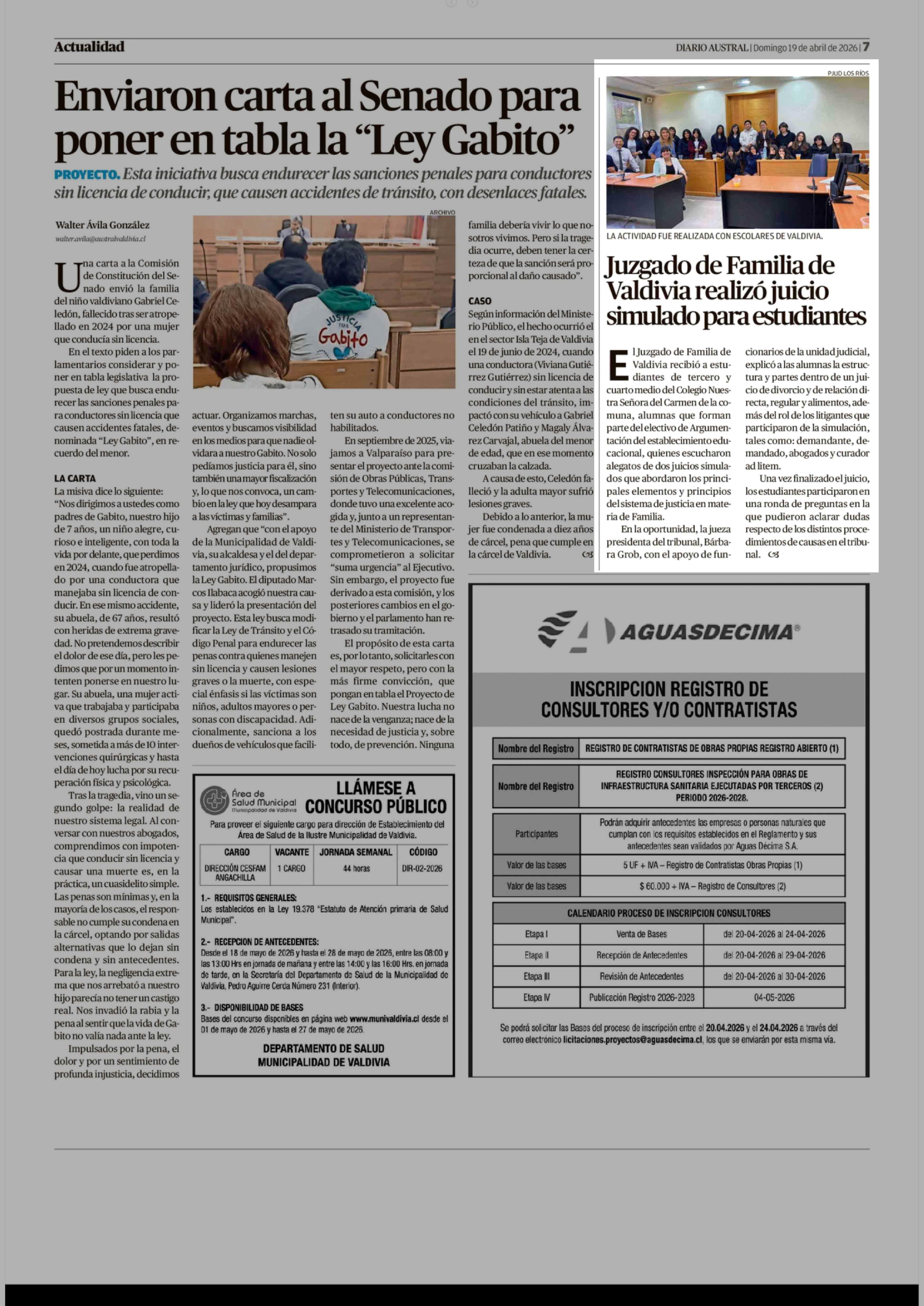 Juzgado de Familia de Valdivia realizó juicio simulado para estudiantes 19-04-2026 Diario Austral Región de Los Ríos |