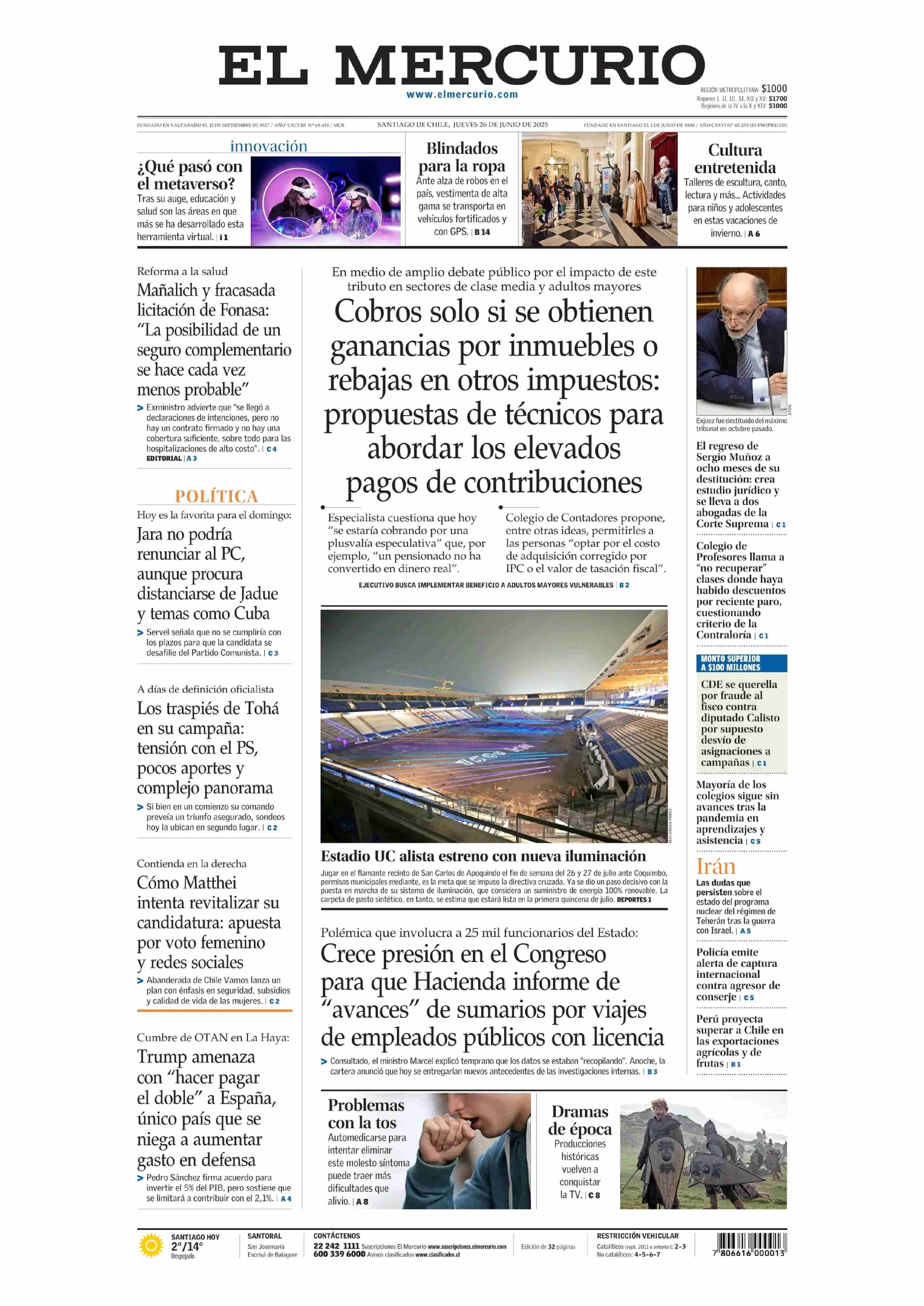 PORTADA EL MERCURIO (A) CHILE 26-06-2025 El Mercurio |