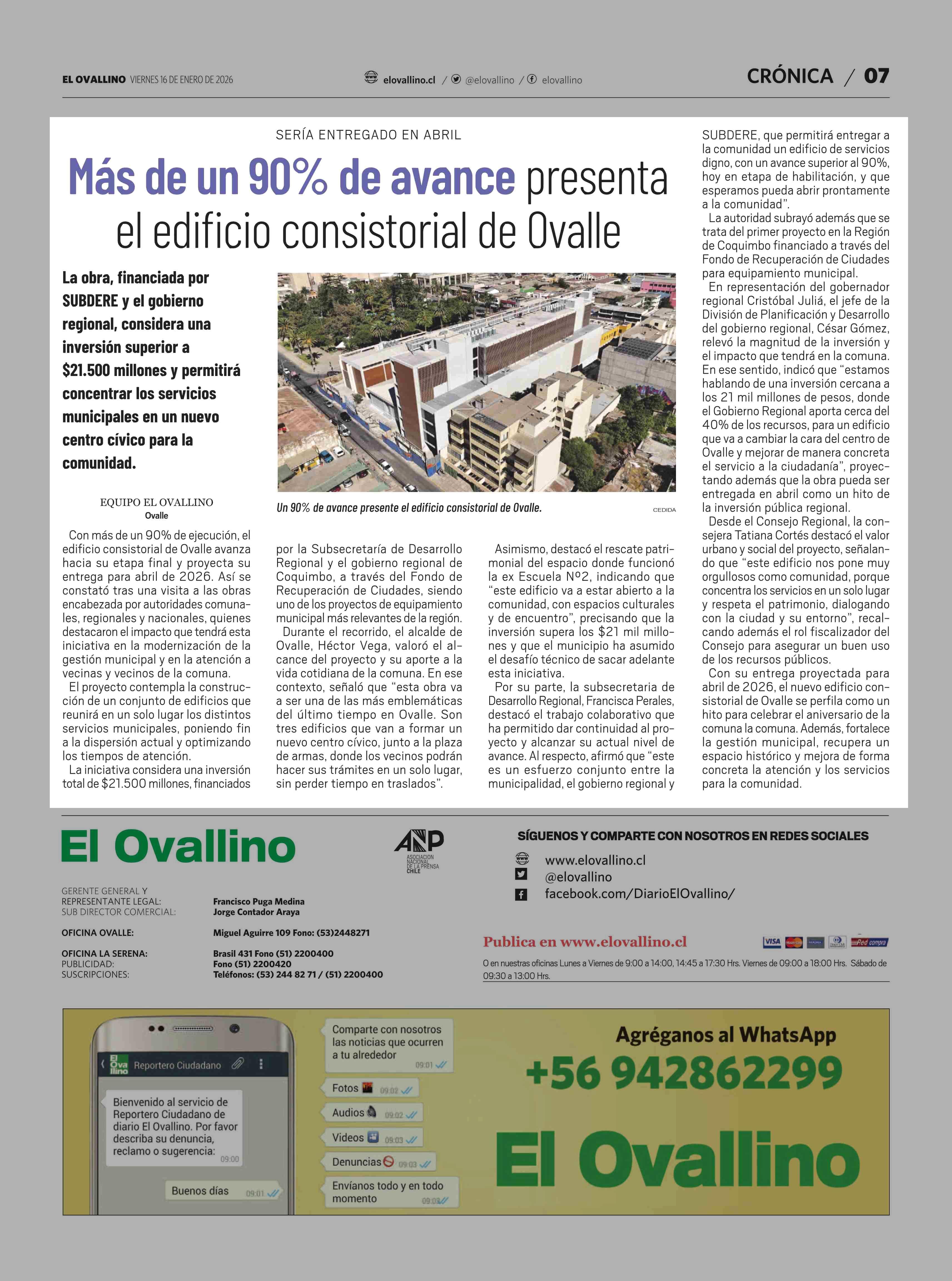 Más de un 90% de avance presenta el edificio consistorial de Ovalle 16-01-2026 El Ovallino |