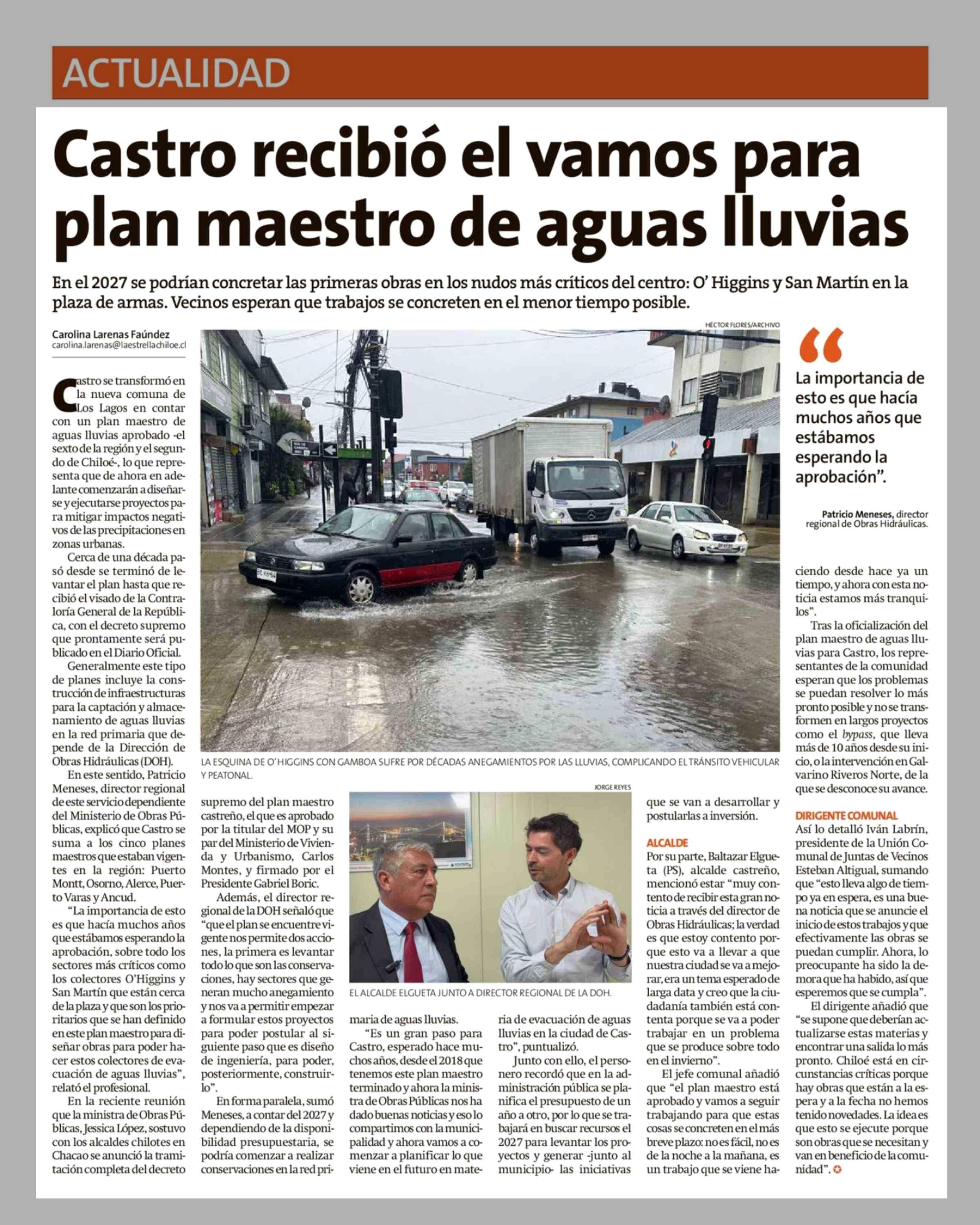 Castro recibió el vamos para plan maestro de aguas lluvias 26-02-2026 La Estrella de Chiloé |