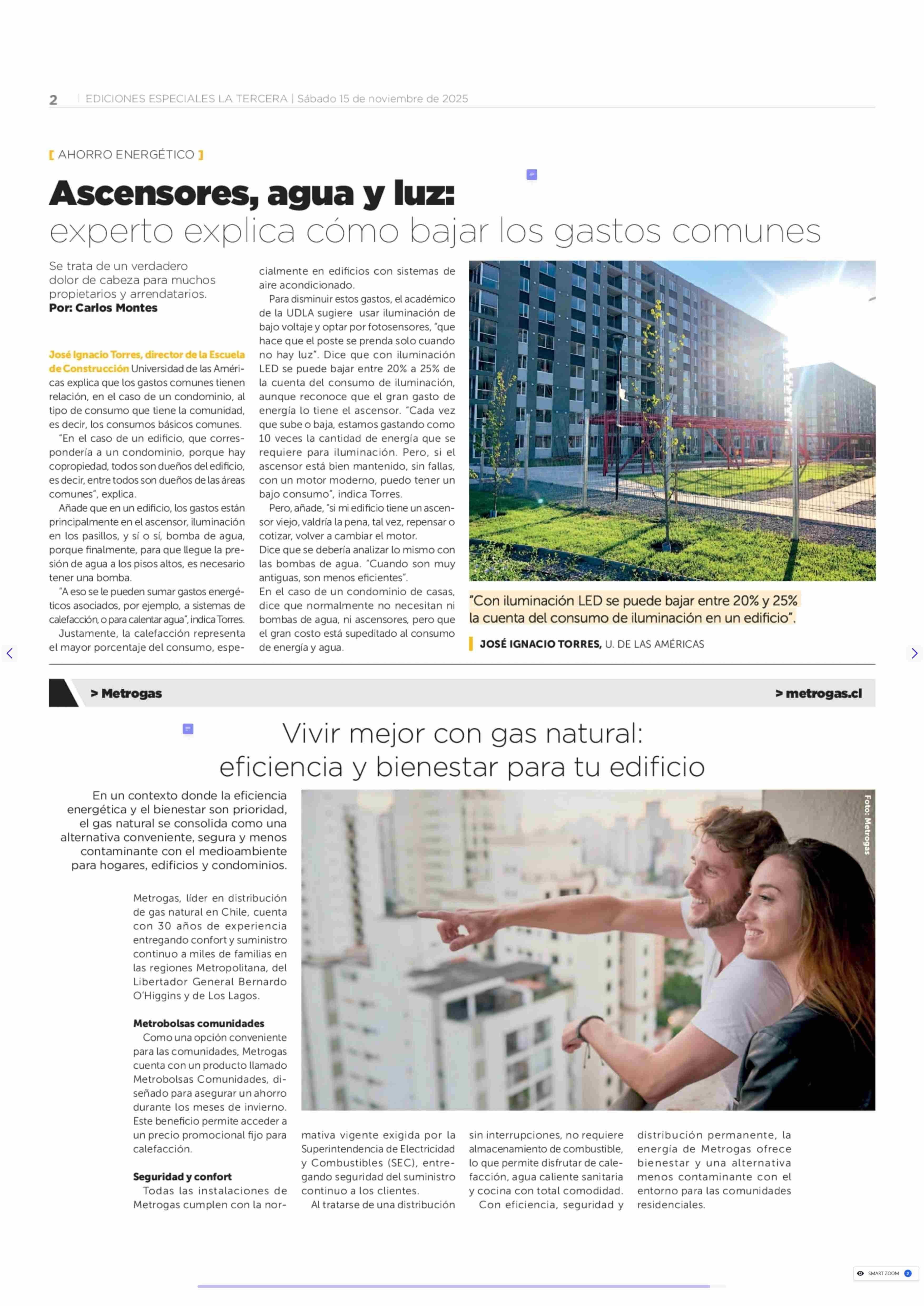Ascensores, agua y luz: experto explica cómo bajar los gastos comunes 15-11-2025 La Tercera |