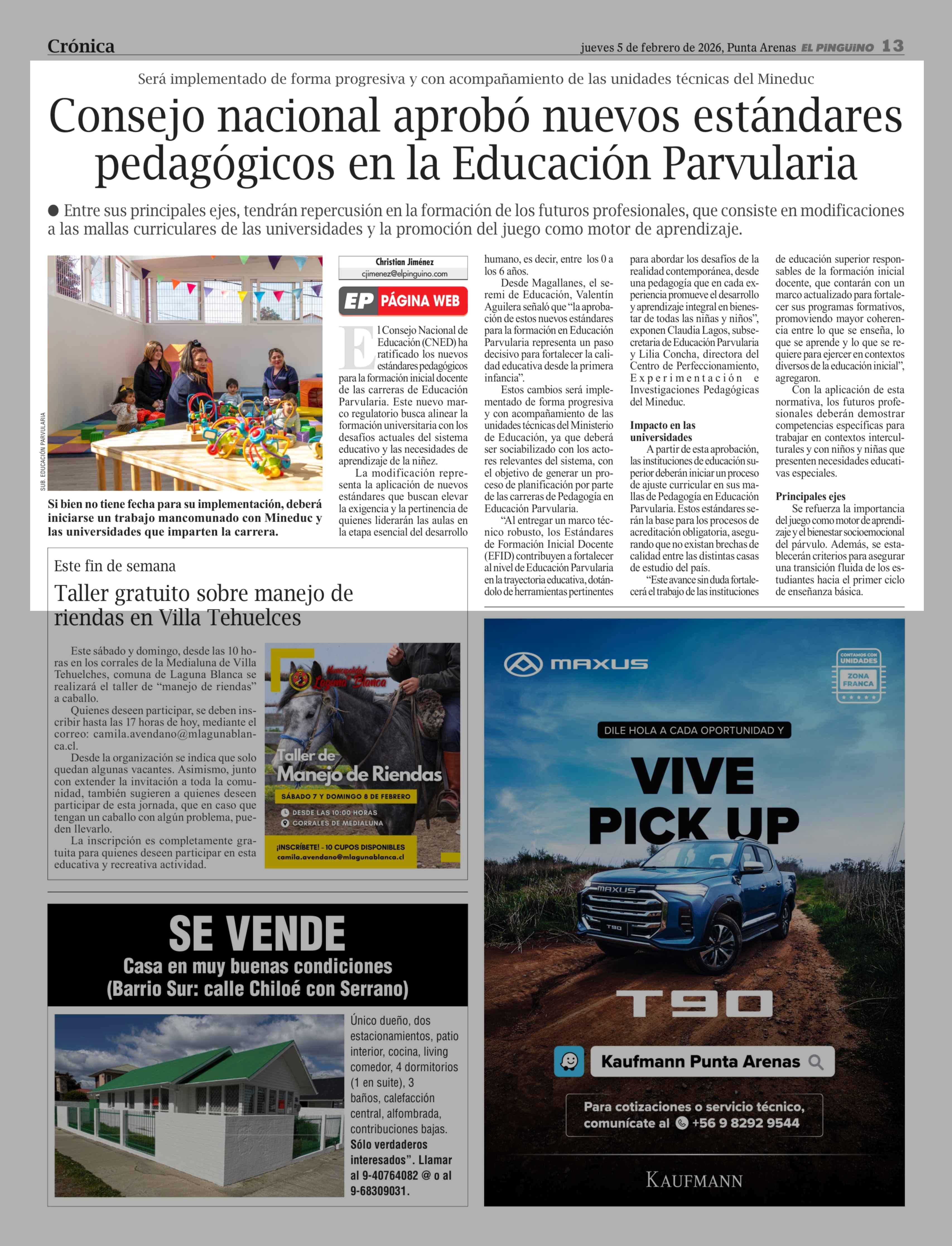 Consejo nacional aprobó nuevos estándares pedagógicos en la Educación Parvularia 05-02-2026 El Pingüino |
