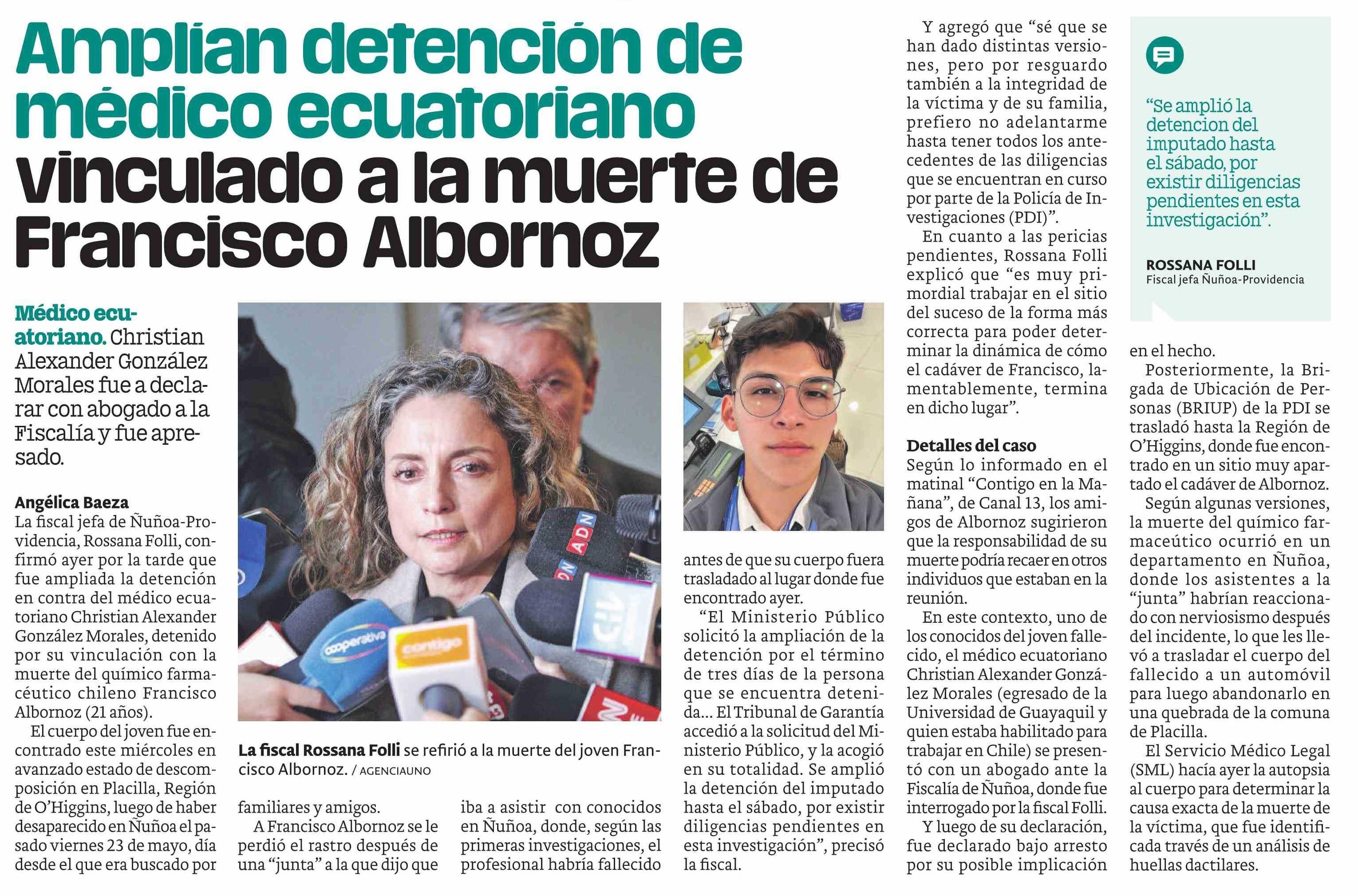 Amplían detención de médico ecuatoriano vinculado a la muerte de Francisco Albornoz 05-06-2025 Publimetro |