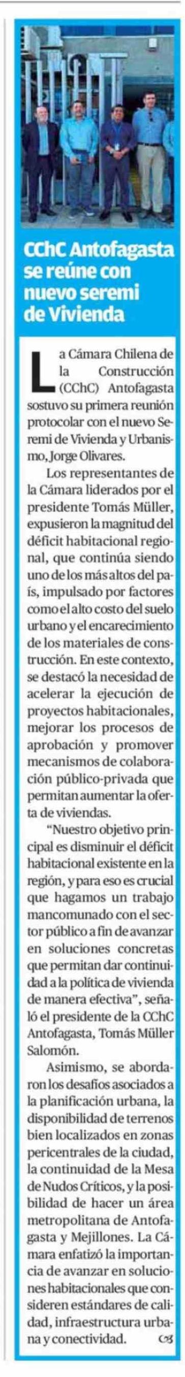 CChC Antofagasta se reúne con nuevo seremi de Vivienda 09-04-2026 El Mercurio de Calama |