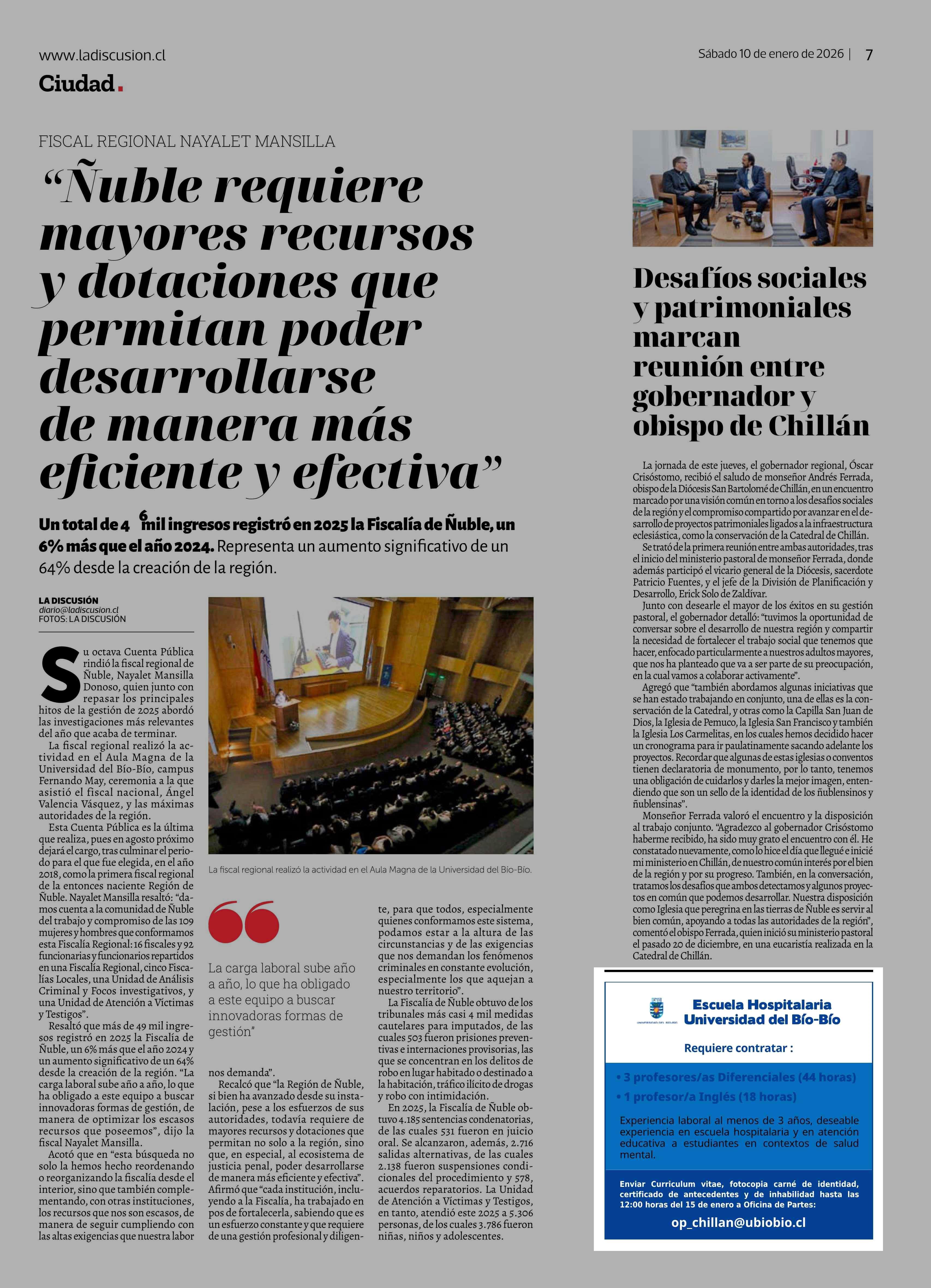 | Fecha: | 10-01-2026 | Sector: | Noticia general | Región: | Región del Ñuble |