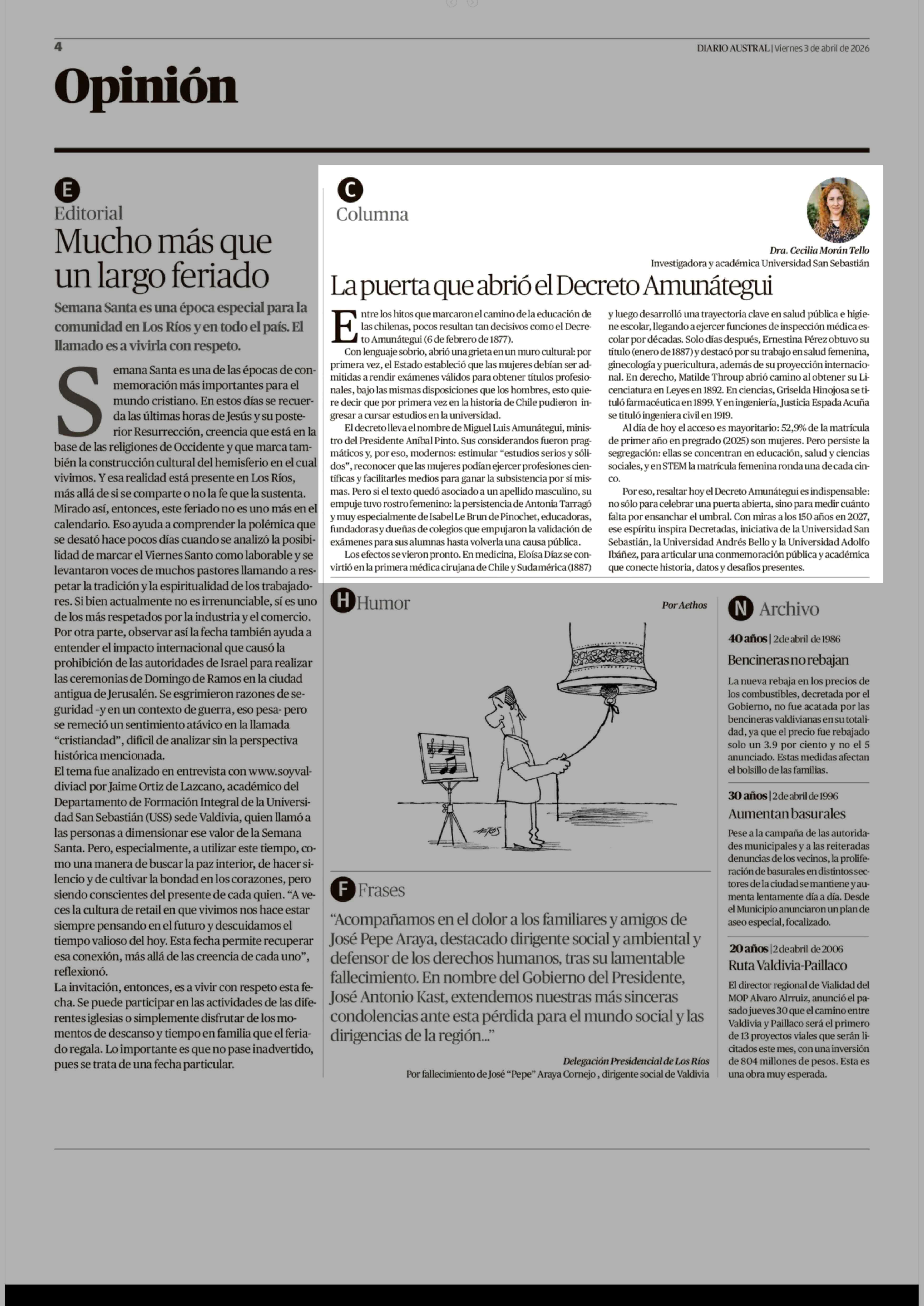 Fecha: 03-04-2026 Sector: Columnas de Opinión Región: Región de Los Ríos