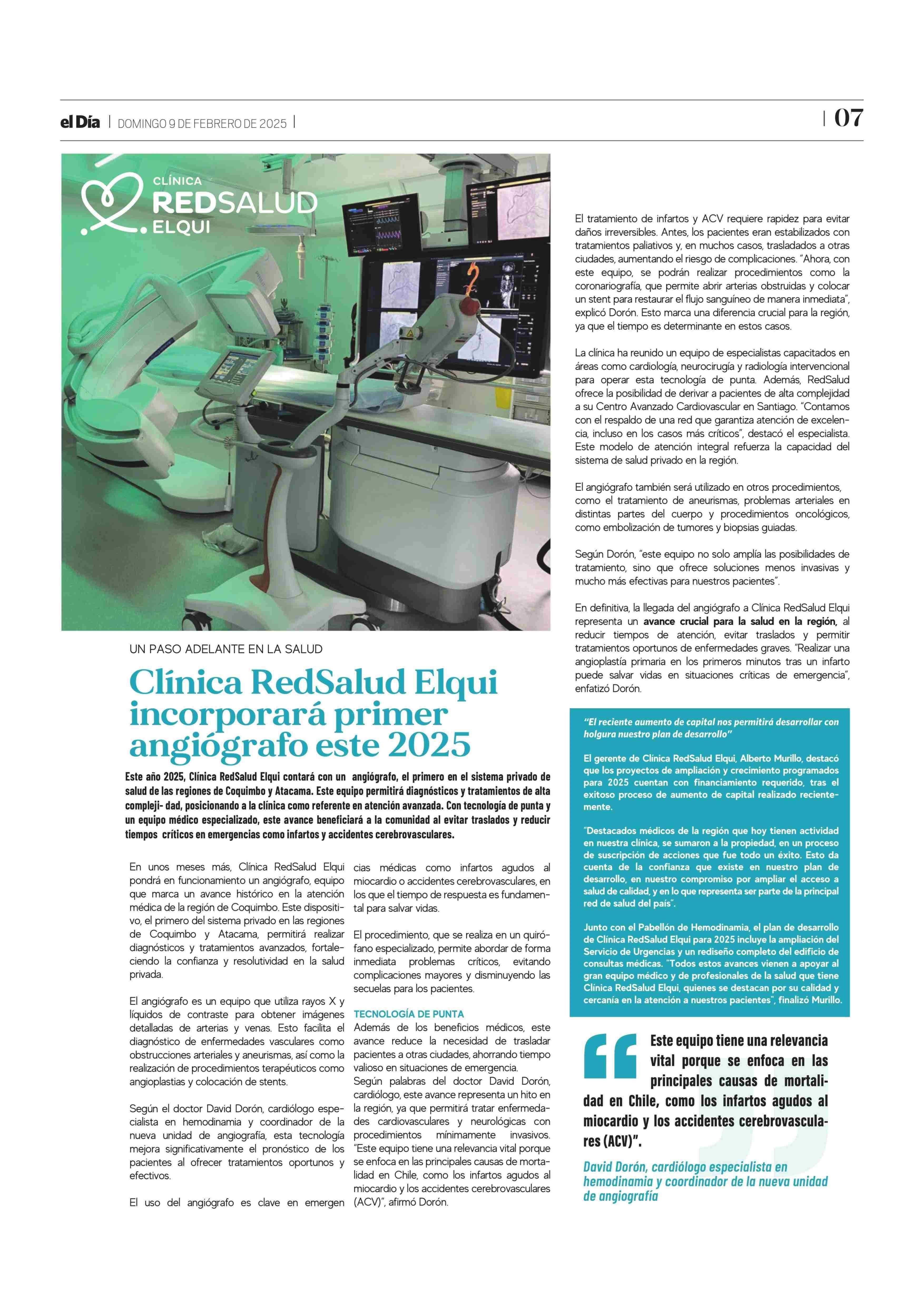 Clínica RedSalud Elqui incorporará primer angiógrafo este 2025 09-02-2025 El Día |