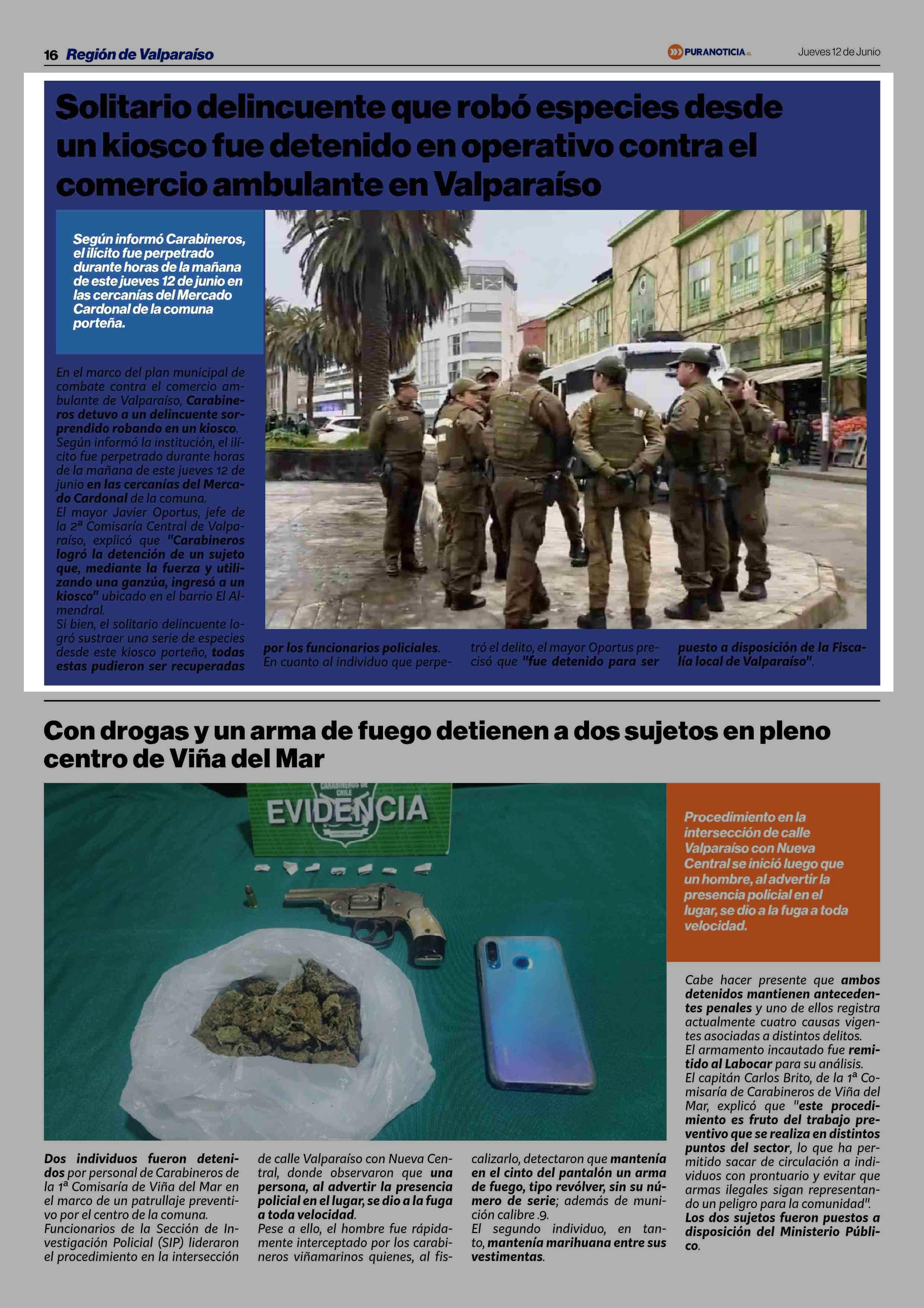 Solitario delincuente que robó especies desde un kiosco fue detenido en operativo contra el comercio ambulante en Valparaíso 12-06-2025 Puranoticia.cl |