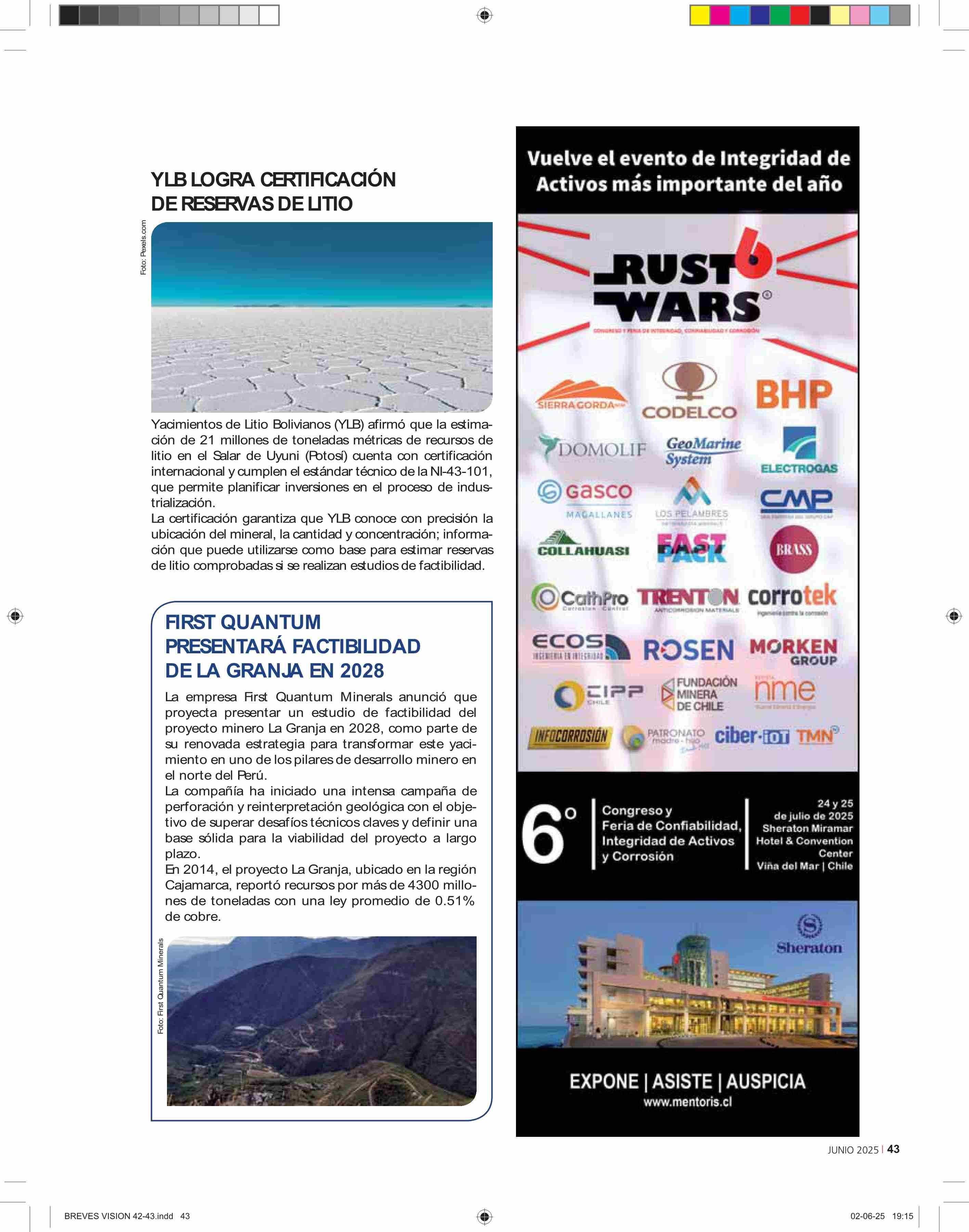 FIRST QUANTUM PRESENTARÁ FACTIBIUDAD DE LA GRANJA EN 2028 12-06-2025 Revista Nueva Minería & Energía |