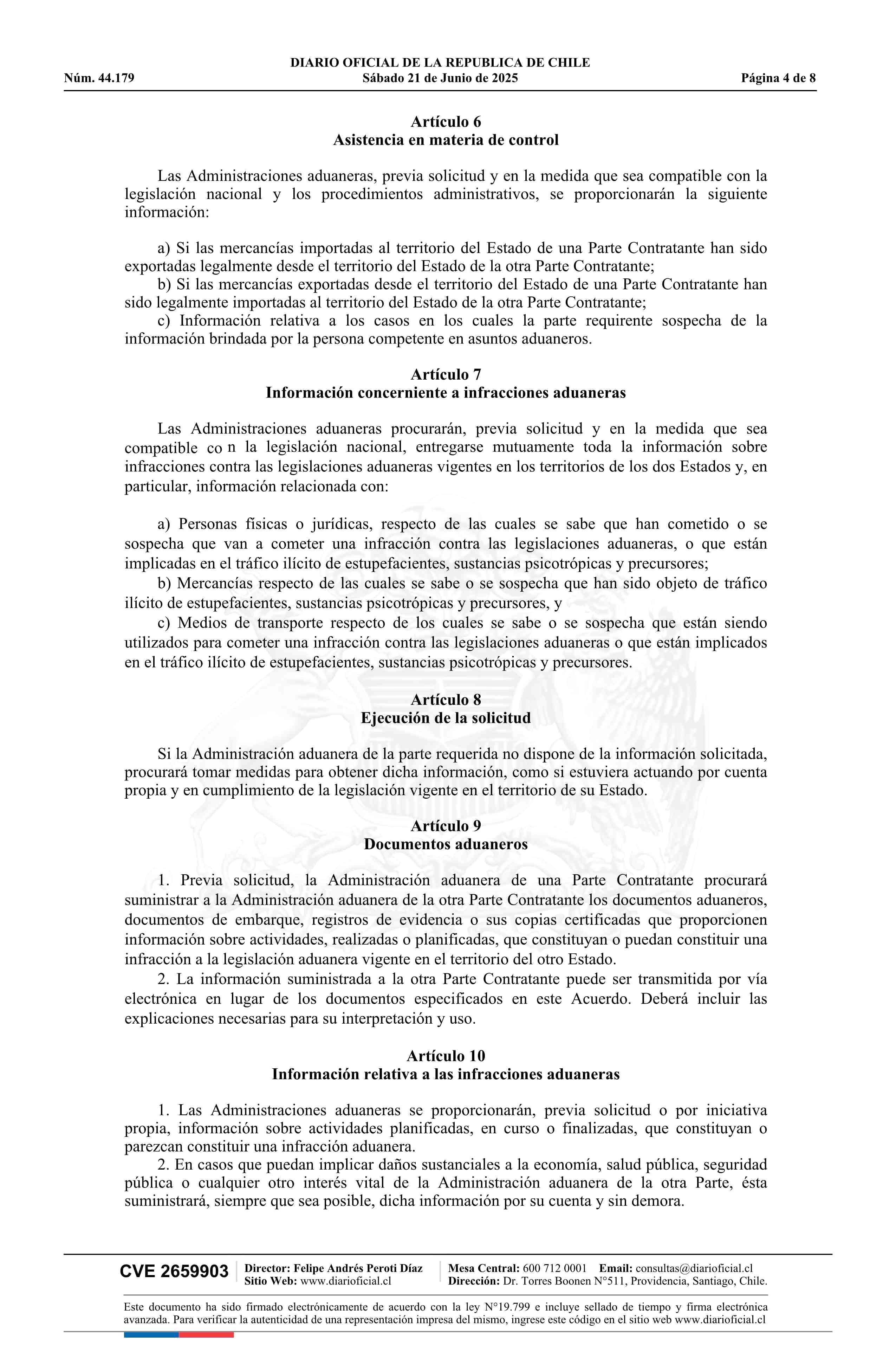 Decreto número 10, de 2025.- Promulga el Acuerdo sobre Cooperación y Asistencia Mutua Administrativa en Materias Aduaneras entre el Gobierno de la República de Chile y el Gobierno de los Emiratos Árabes Unidos