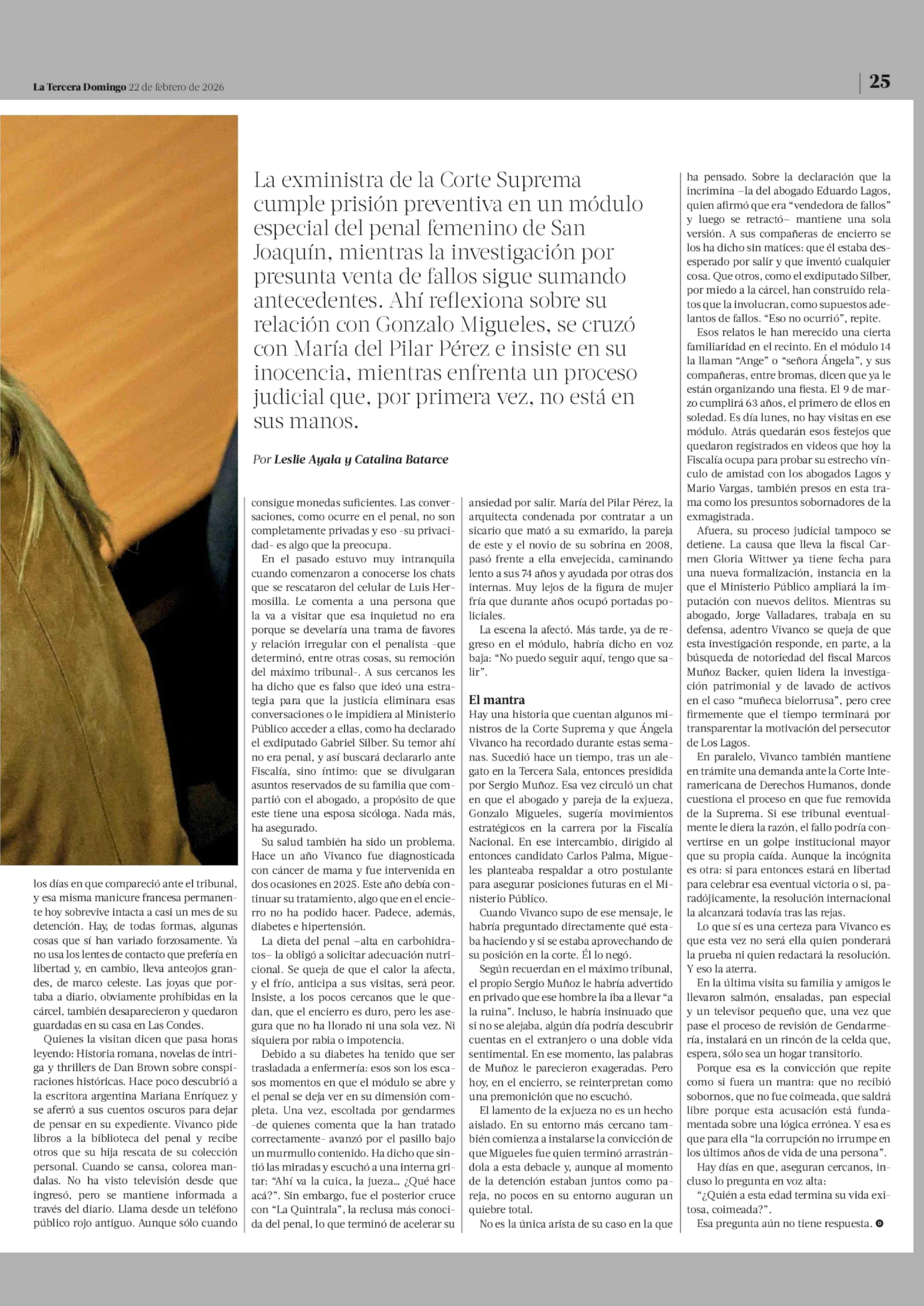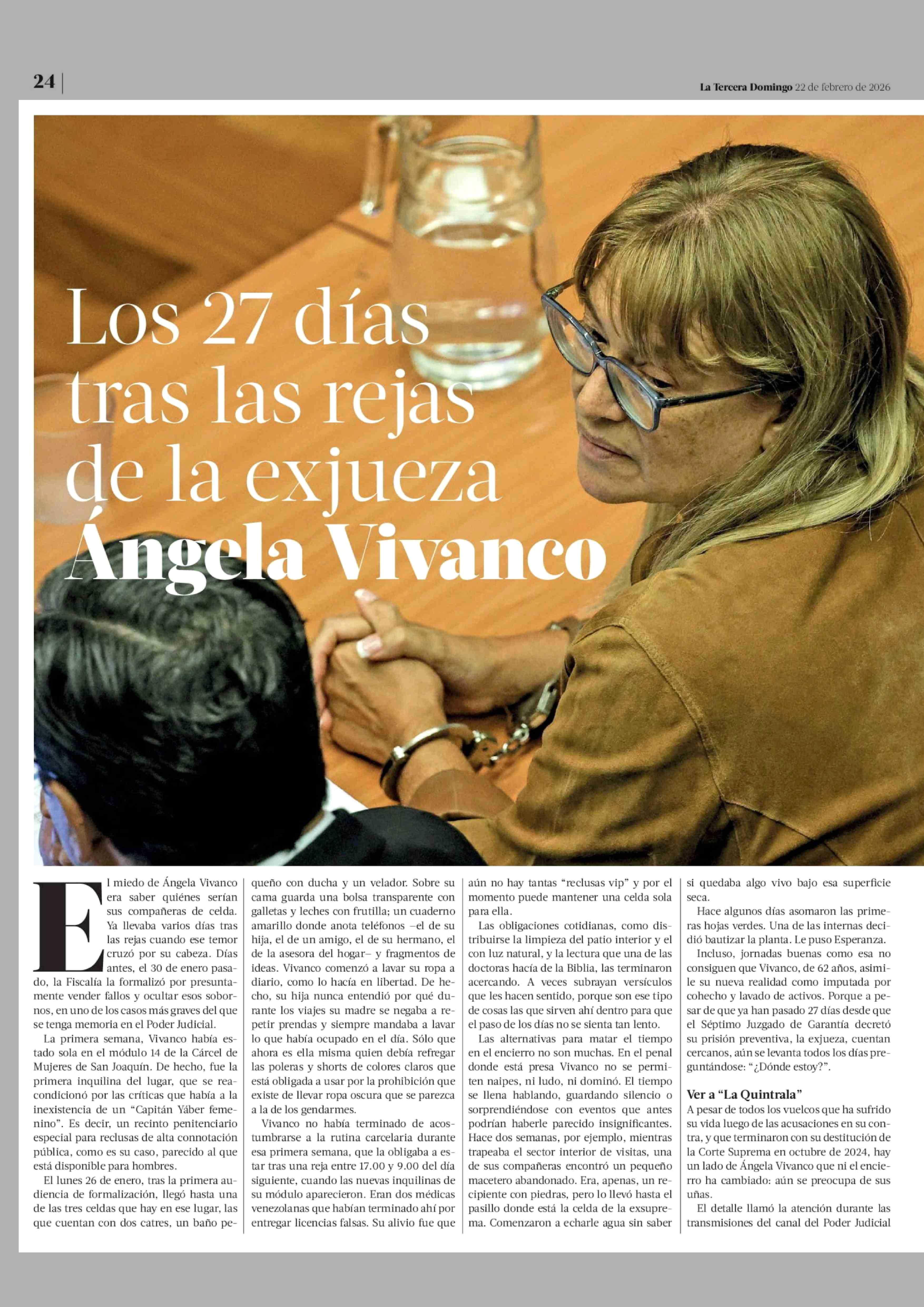 Los 27 días tras las rejas de la exjueza Angela Vivanco 22-02-2026 La Tercera |