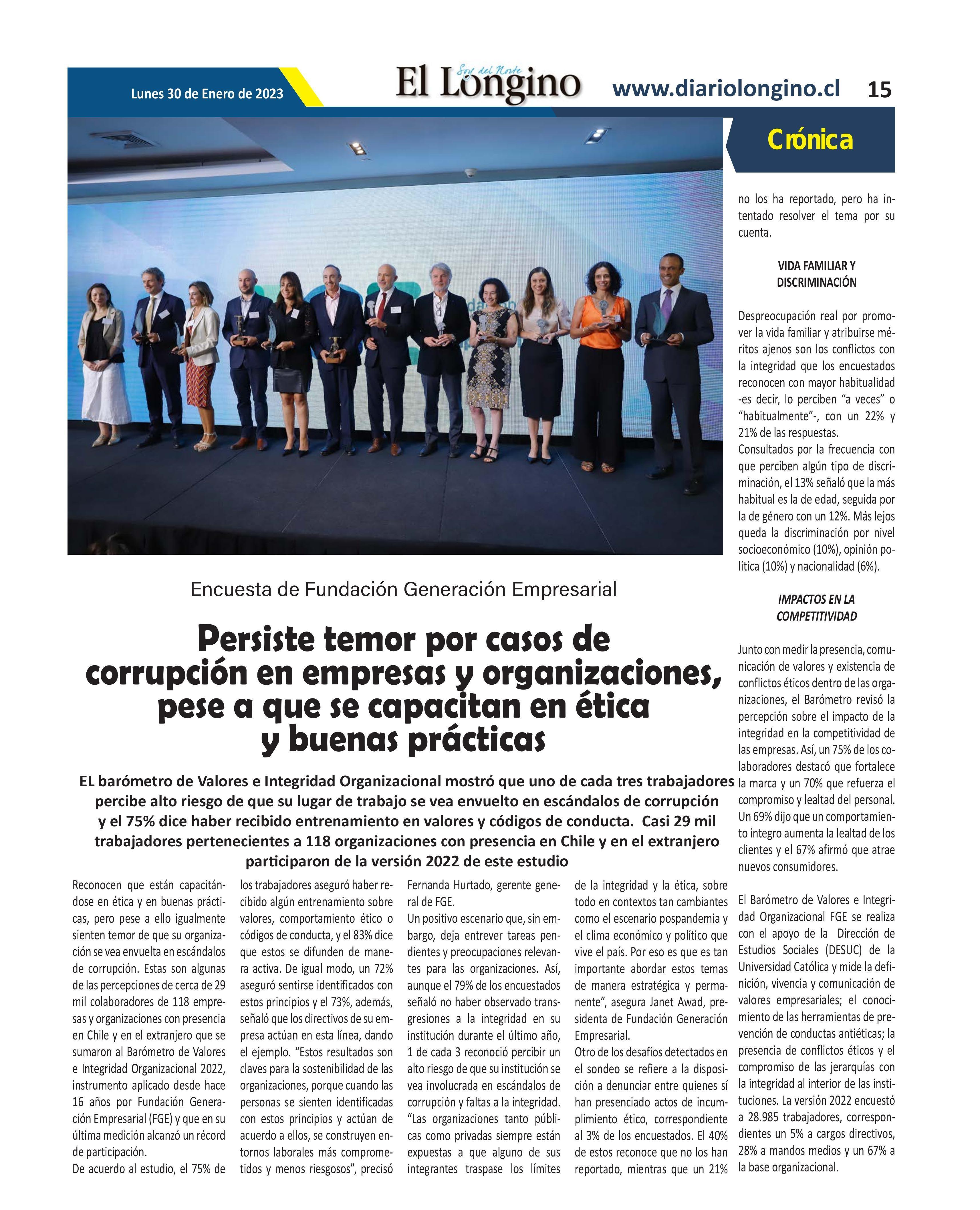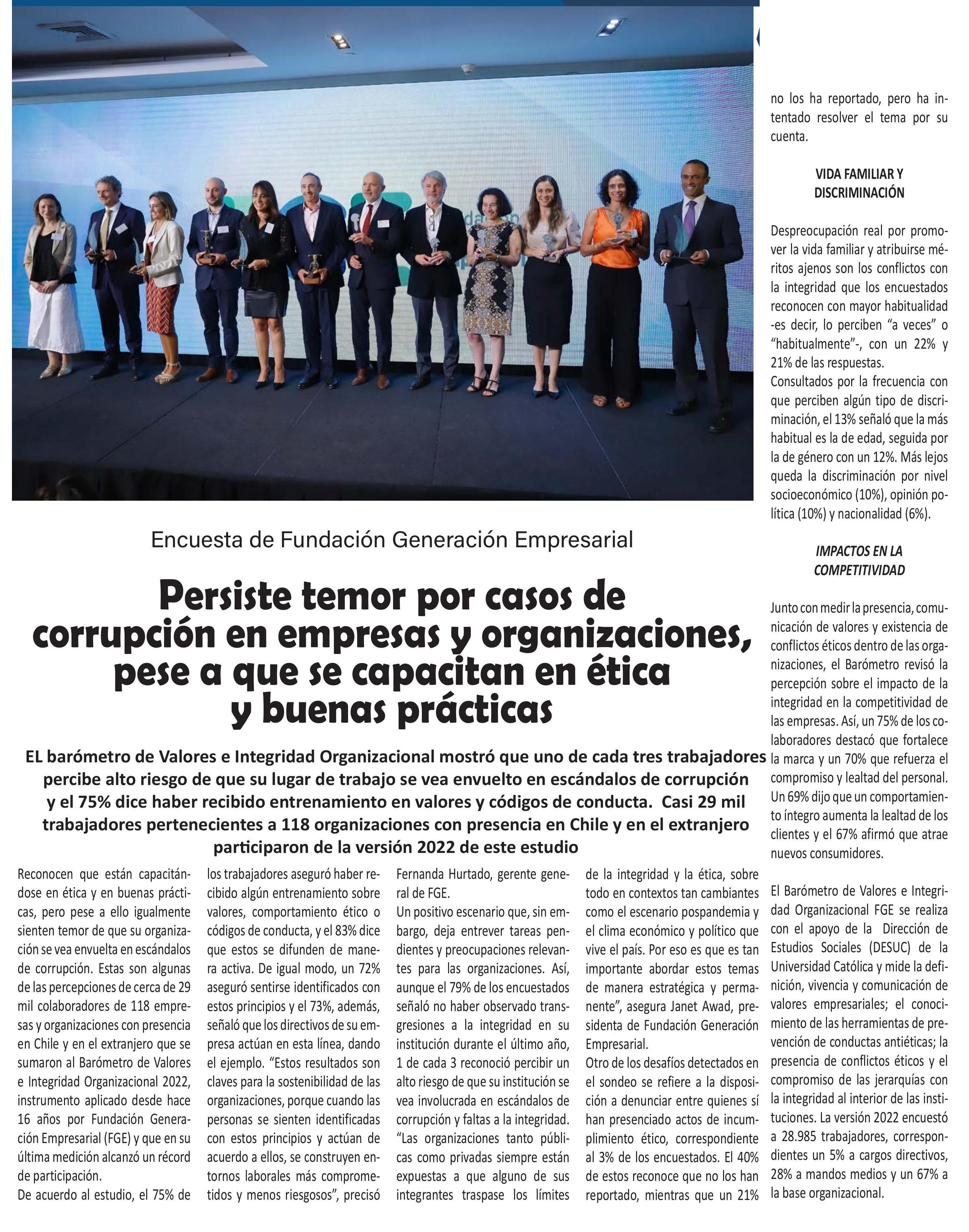 | Título: | Persiste temor por casos de corrupción en empresas y organizaciones, pese a que se capacitan en ética y buenas prácticas |