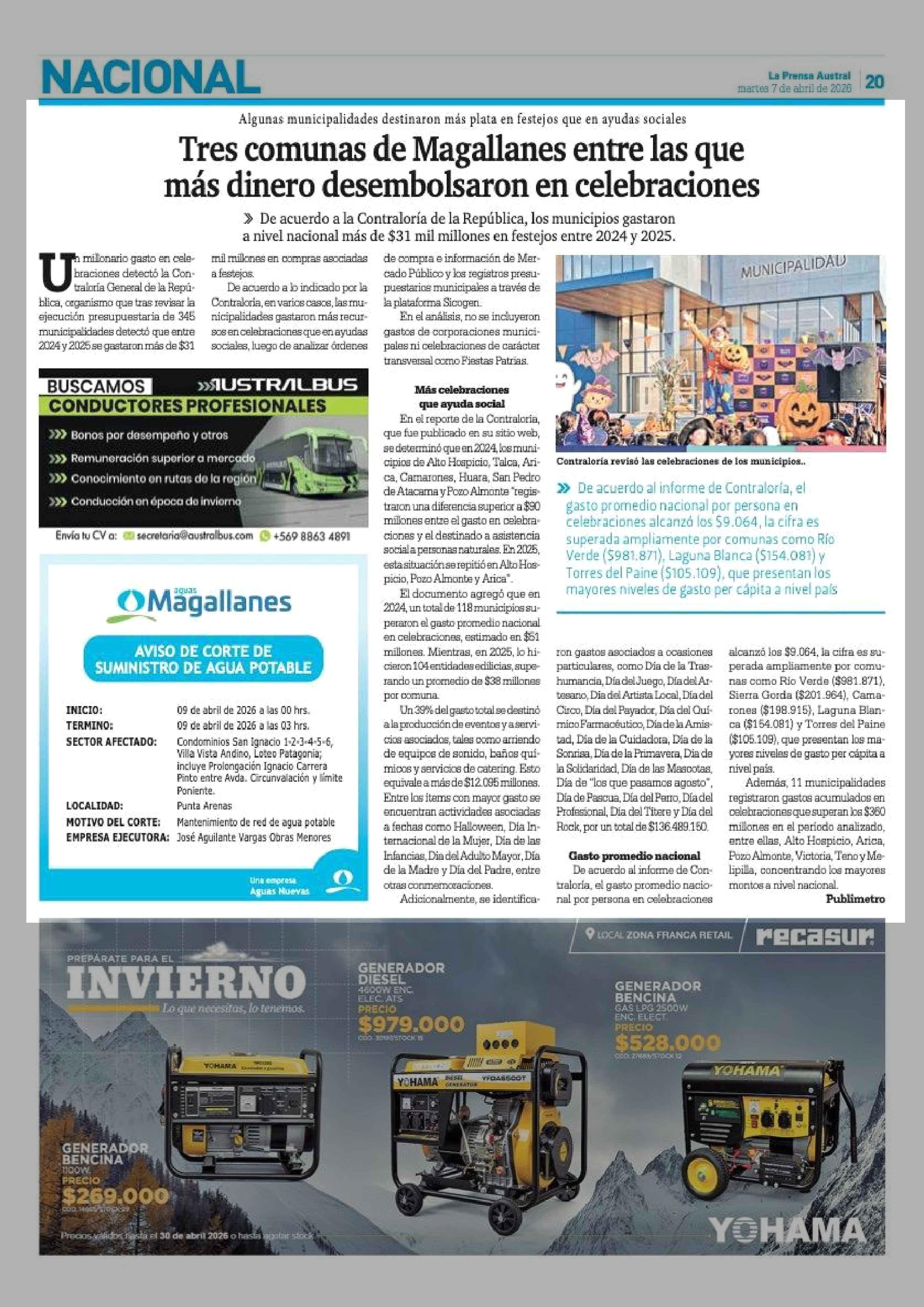 Tres comunas de Magallanes entre las que más dinero desembolsaron en celebraciones 07-04-2026 La Prensa Austral |