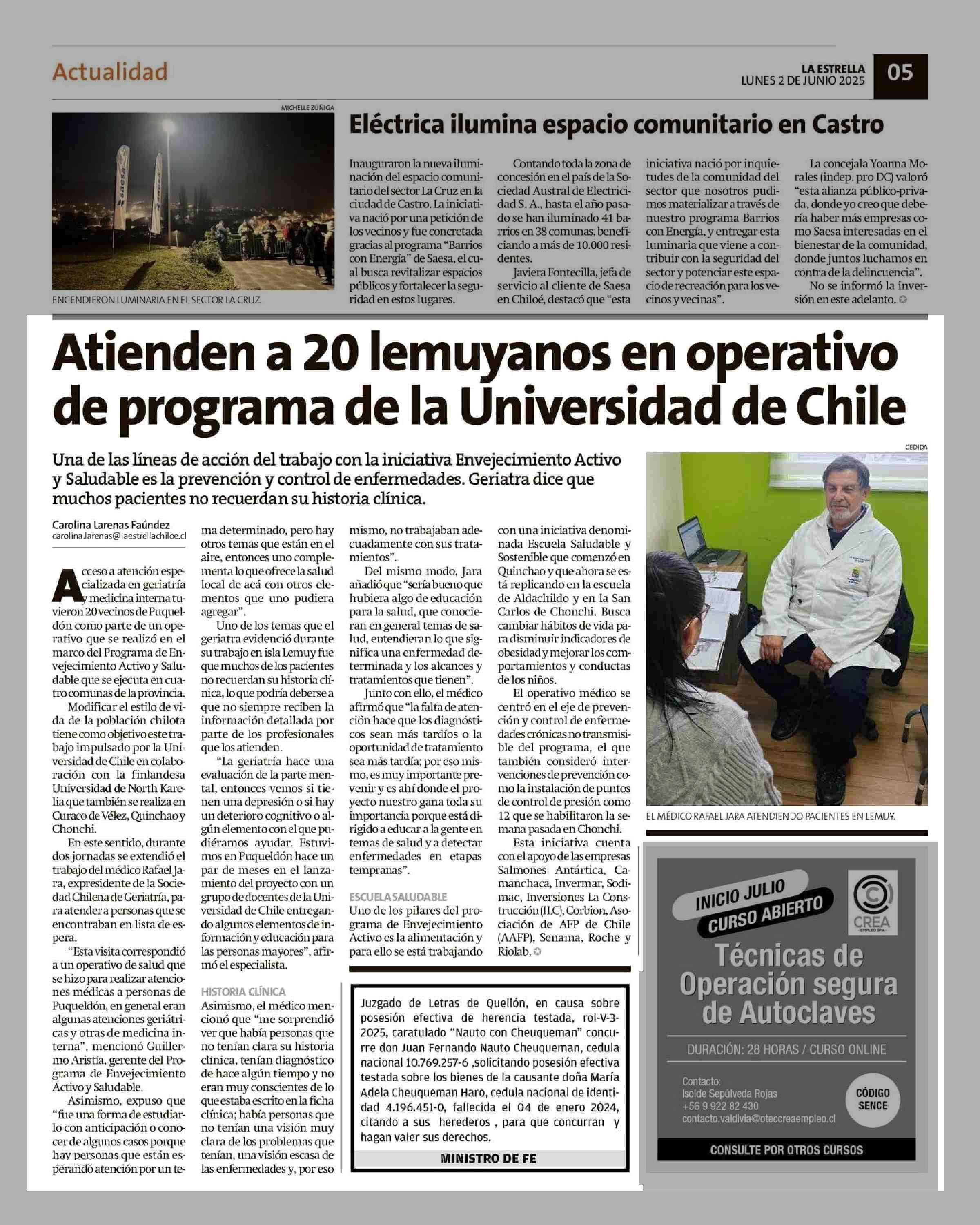 Atienden a 20 lemuyanos en operativo de programa de la Universidad de Chile 02-06-2025 La Estrella de Chiloé |