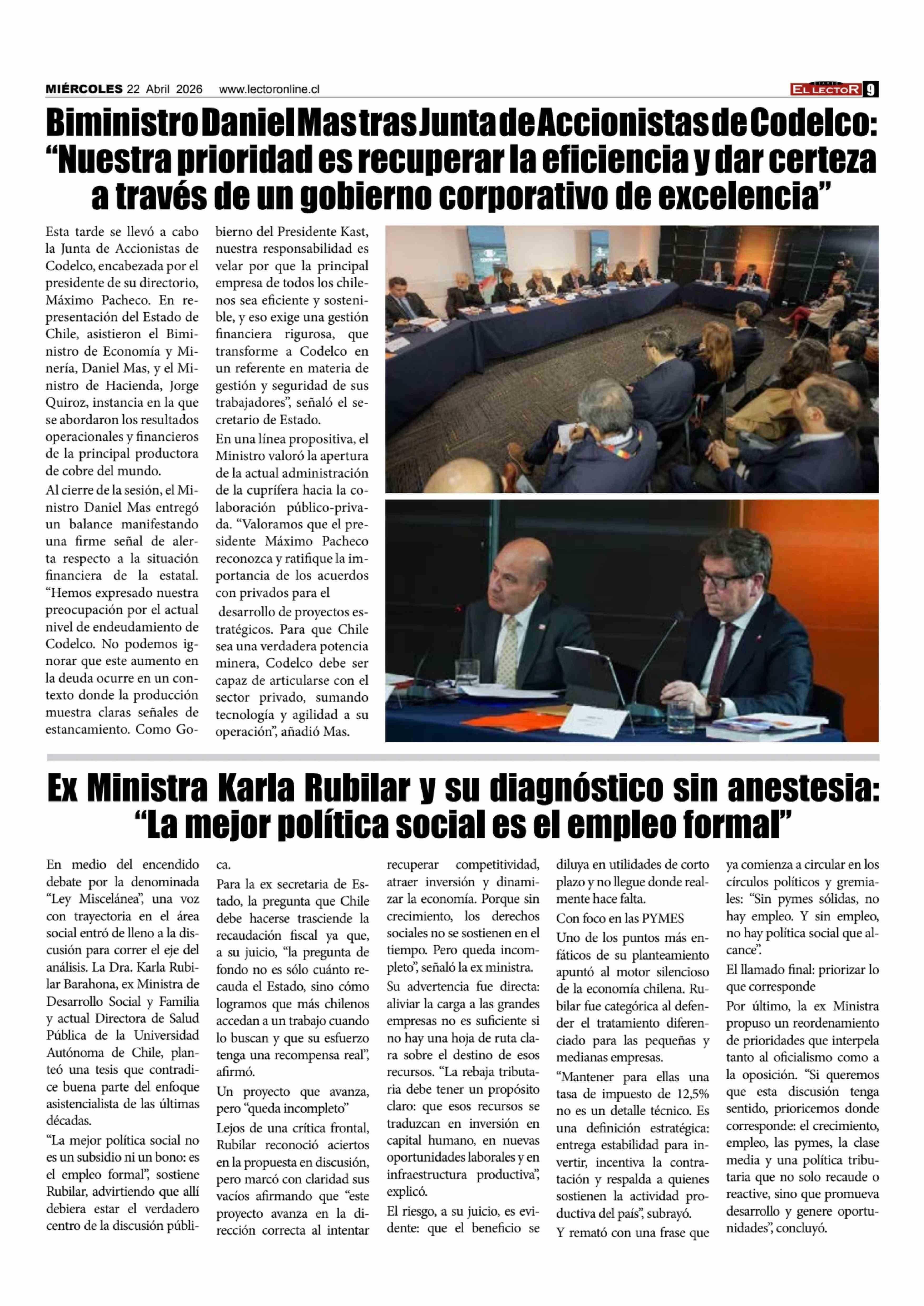 Título: Biministro Daniel Mas tras Junta de Accionistas de Codelco: "Nuestra prioridad es recuperar la eficiencia y dar certeza a través de un gobierno corporativo de excelencia"