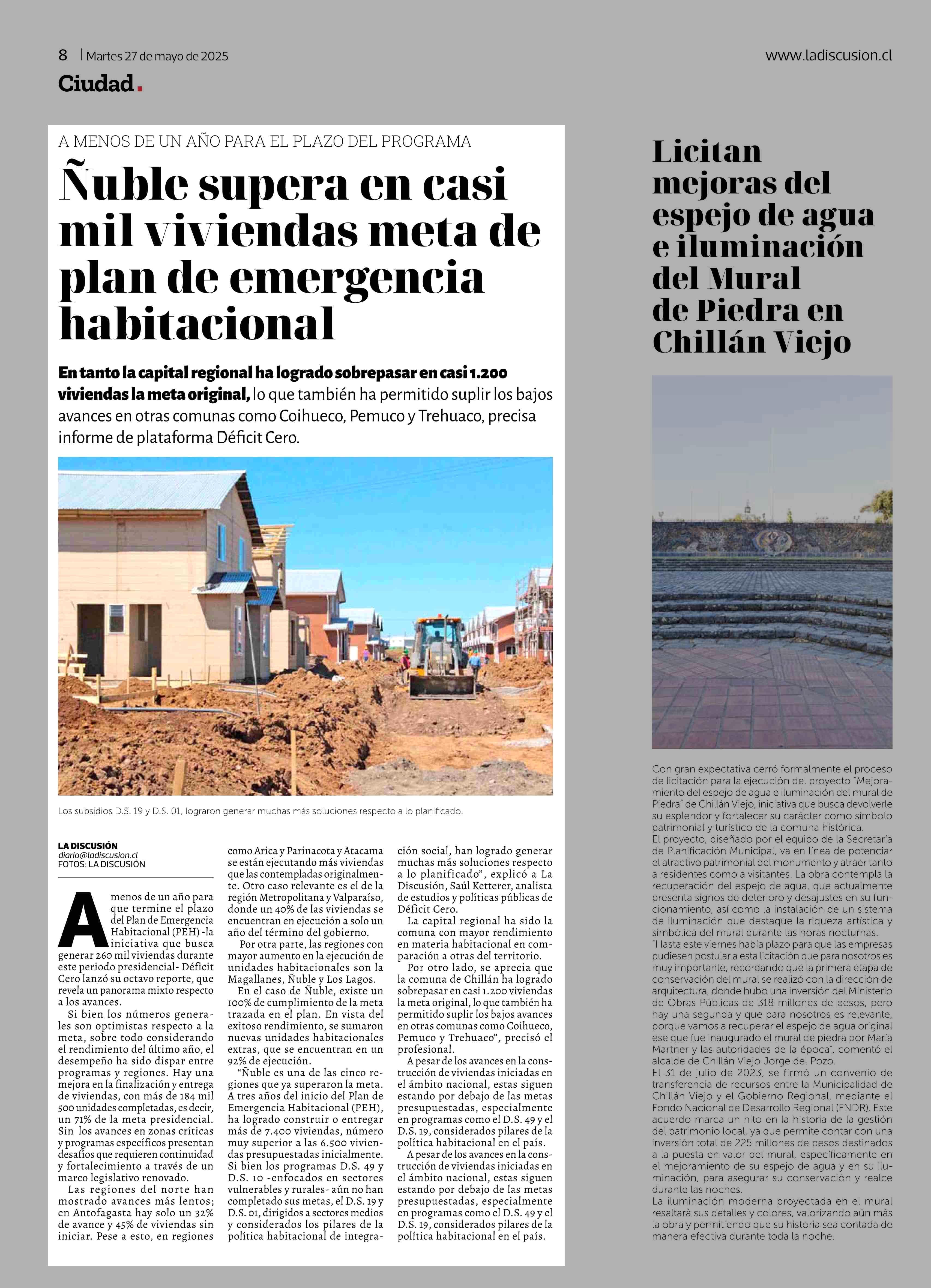 Ñuble supera en casi mil viviendas meta de plan de emergencia habitacional 27-05-2025 La Discusión |