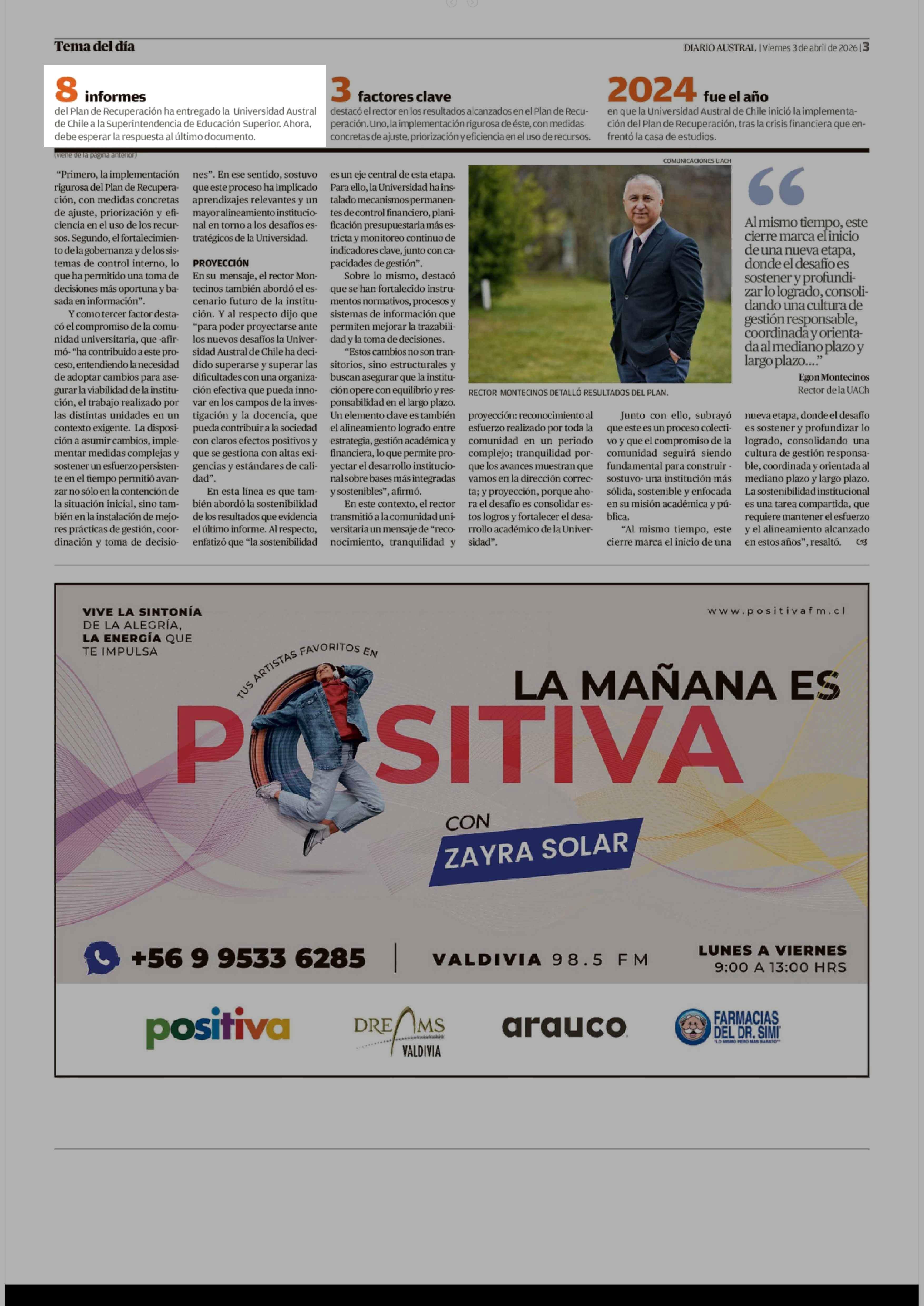 Fuente: Diario Austral Región de Los Ríos (Diario Austral Región de Los Ríos) Página(s): 3