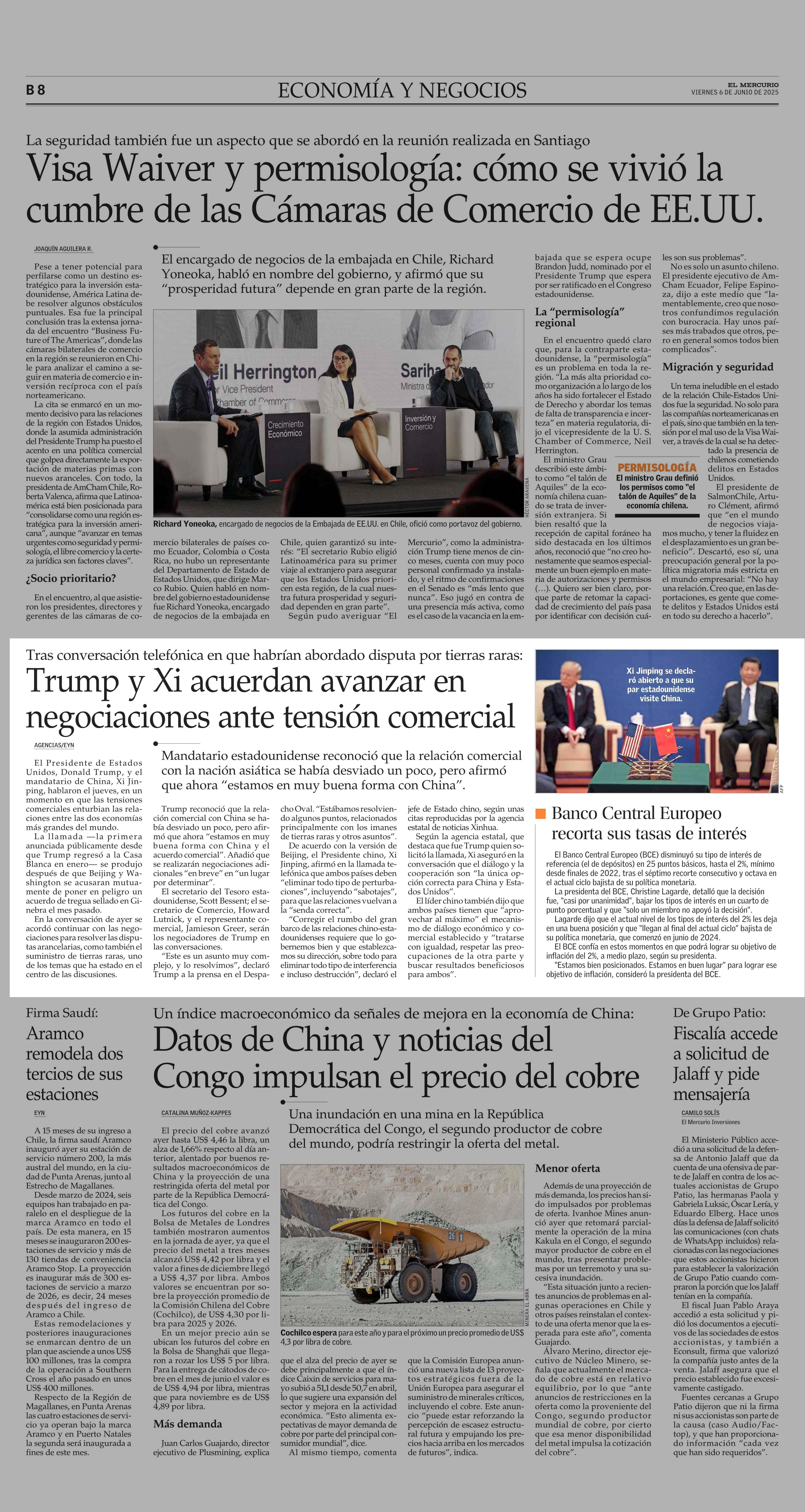 1rump y Xi acuerdan avanzar en negociaciones ante tensión comercial 06-06-2025 El Mercurio |