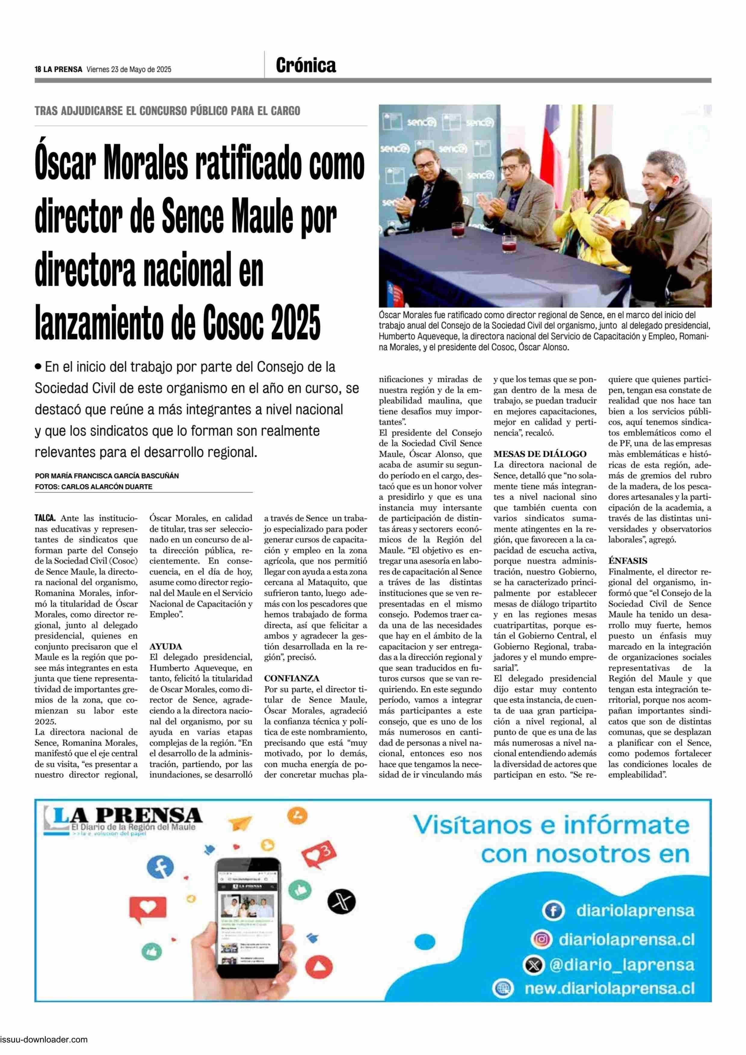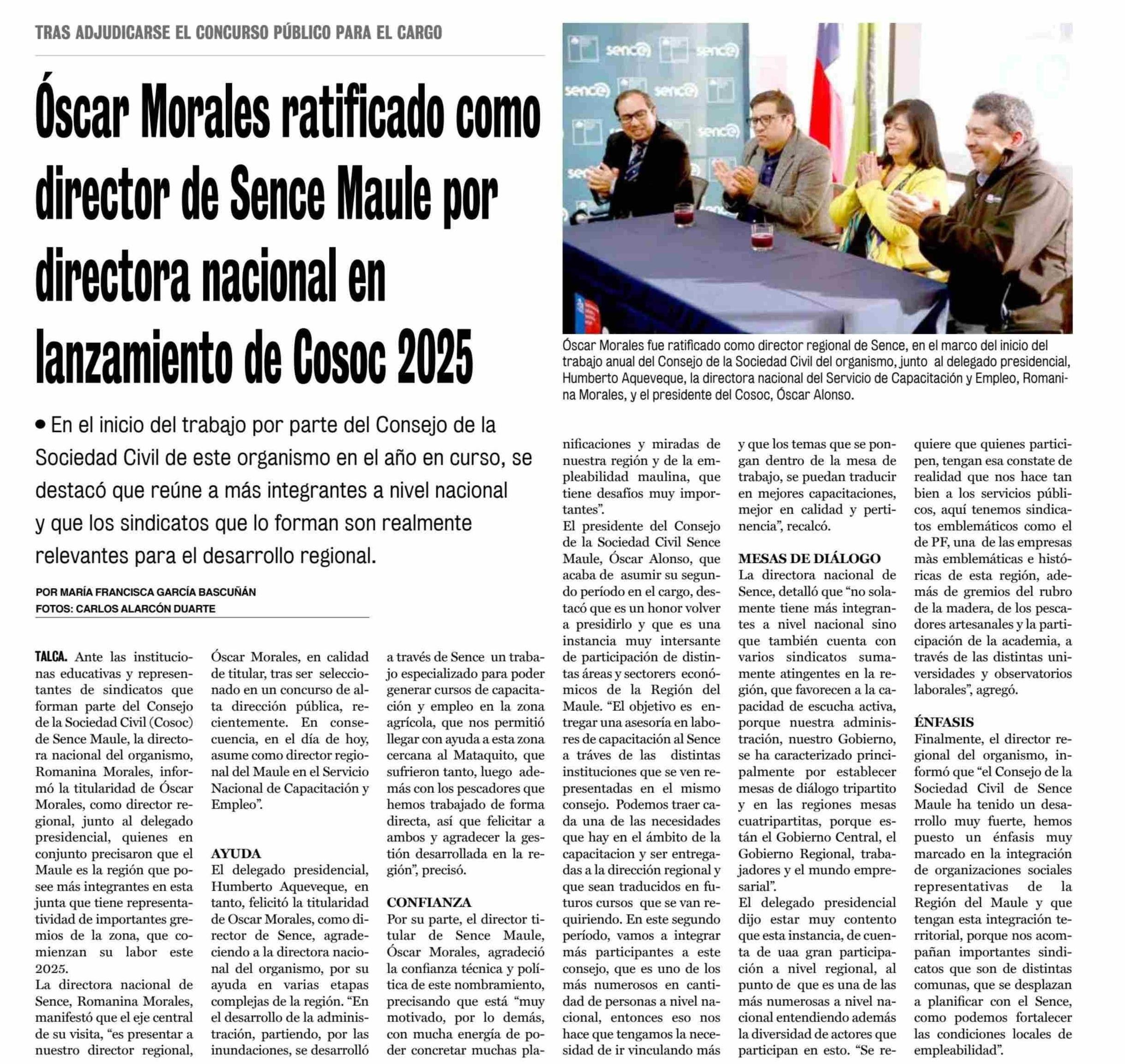 Óscar Morales ratificado como director de Sence Maule por directora nacional en lanzamiento de Gosoc 2095 23-05-2025 La Prensa de Curicó |