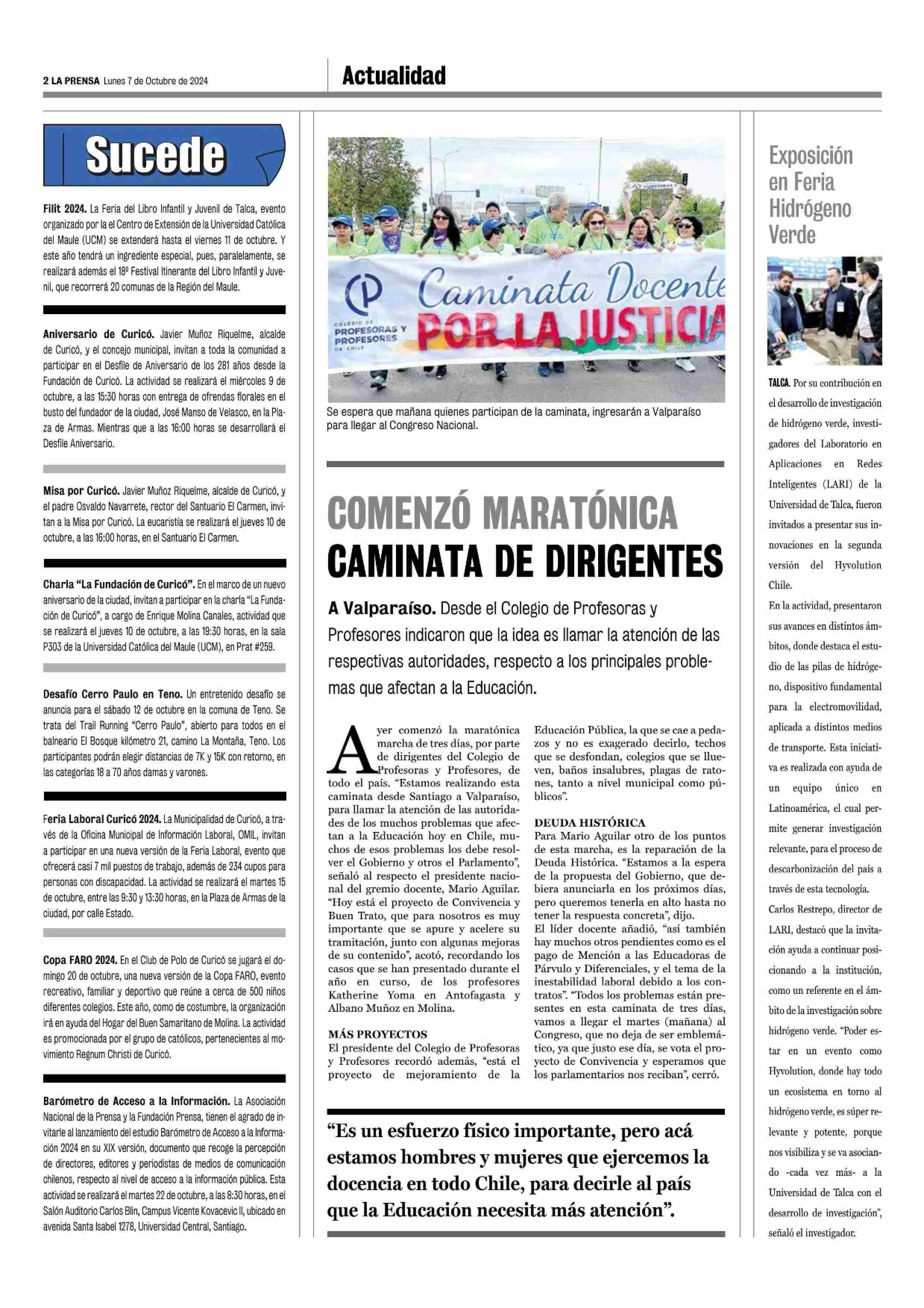 Exposición en Feria Hidrógeno Verde 07-10-2024 La Prensa de Curicó |