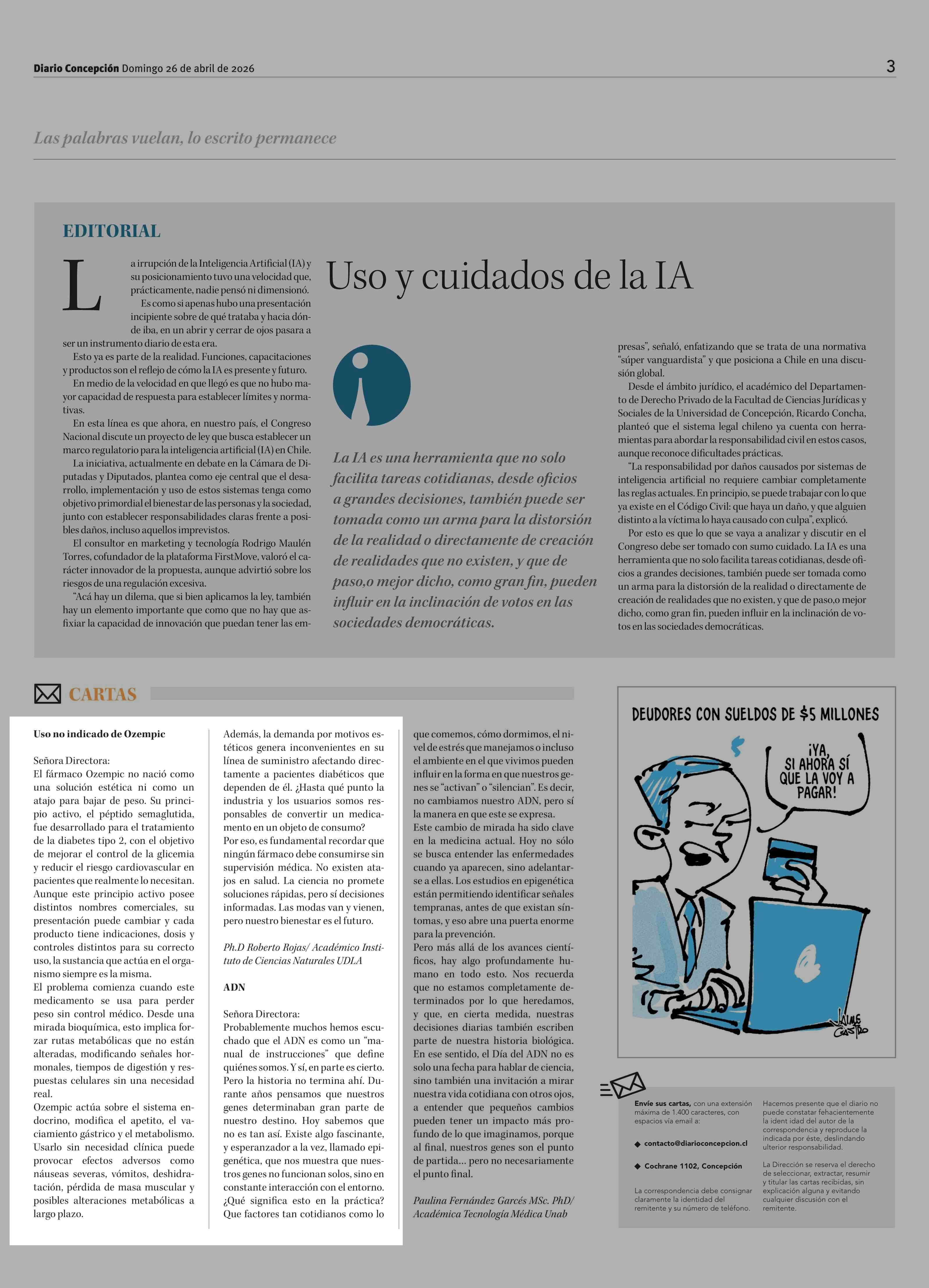 CARTAS: Uso no indicado de Ozempic 26-04-2026 Diario Concepción |
