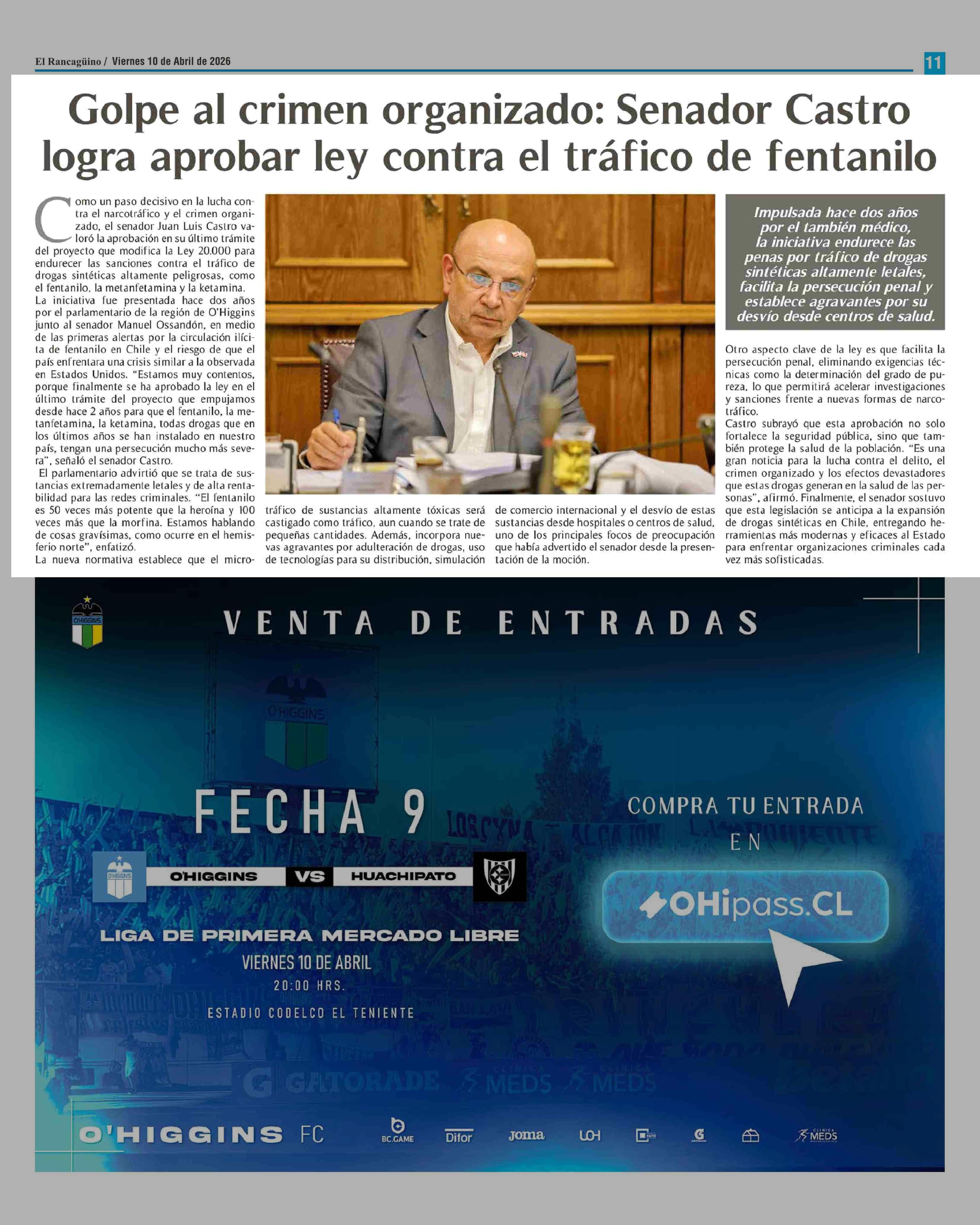 Fecha: 10-04-2026 Sector: Noticia general Región: Región del Libertador General Bernardo O'Higgins