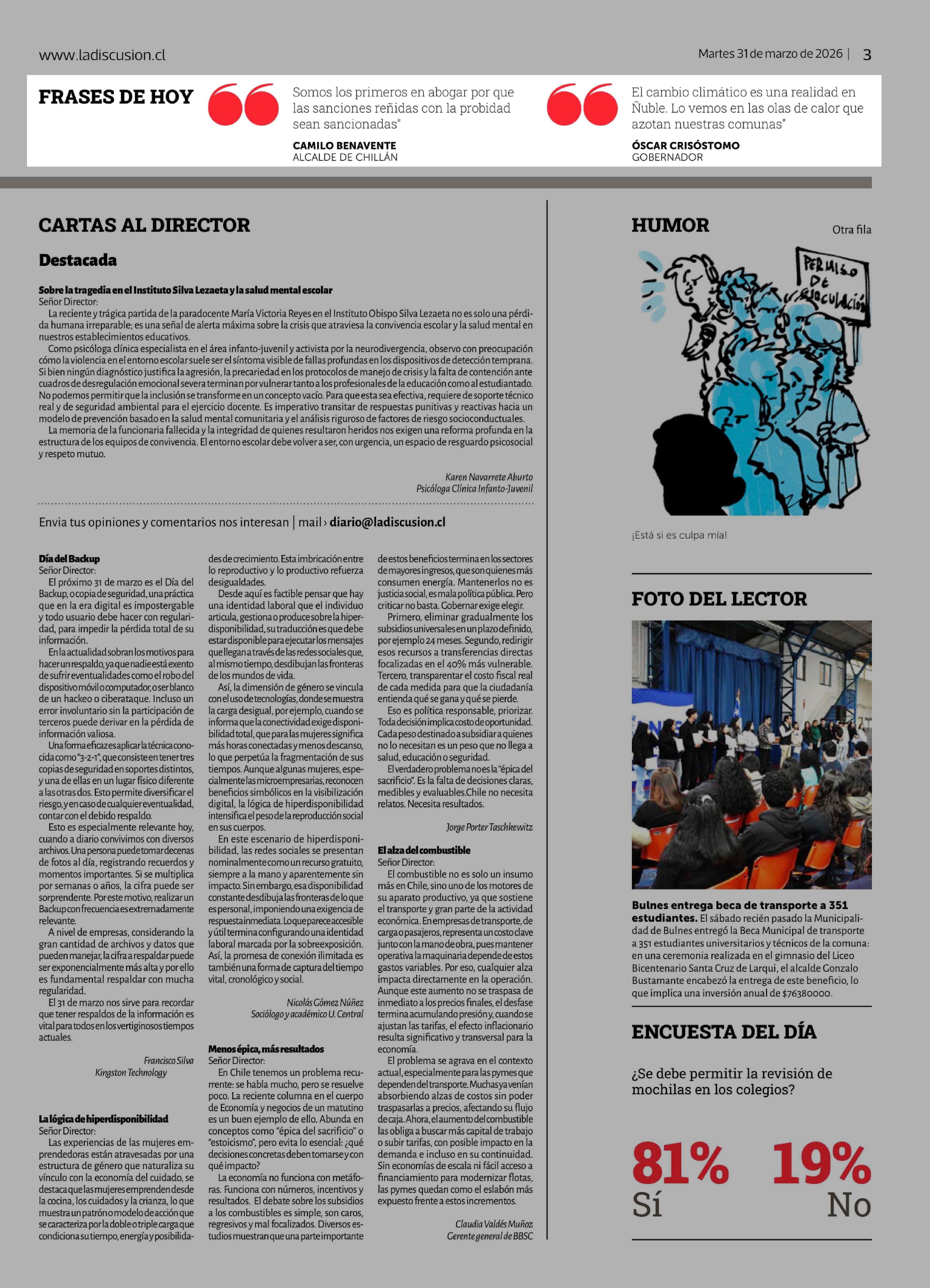 FRASES DE HOY 31-03-2026 La Discusión |
