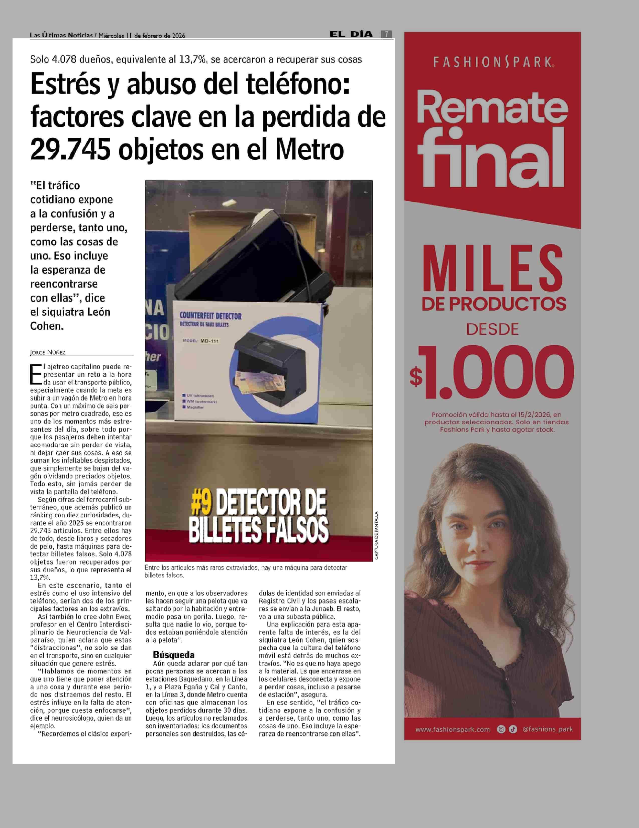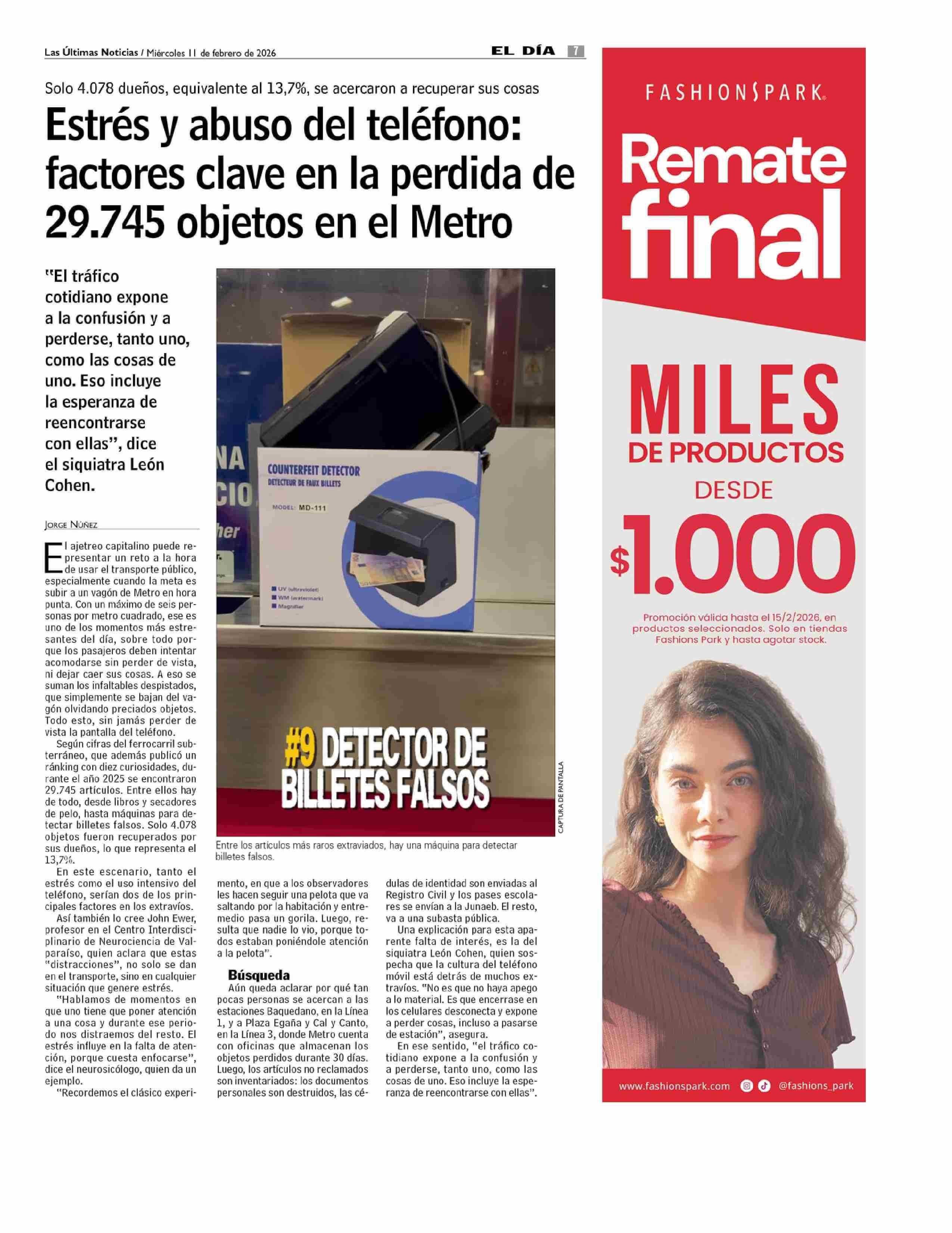 Estrés y abuso del teléfono: factores clave en la perdida de 29.745 objetos en el Metro 11-02-2026 Las Últimas Noticias |