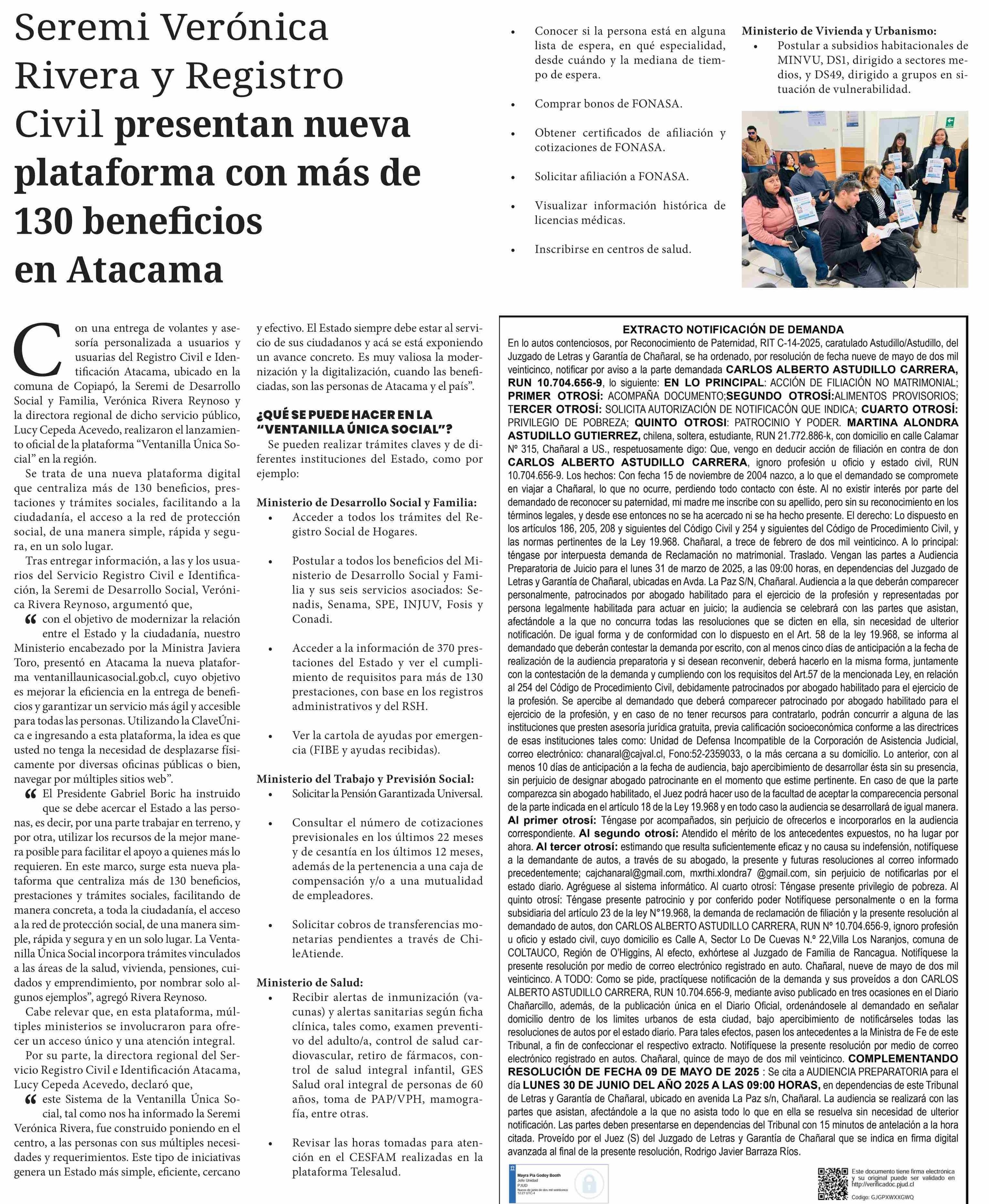 Seremi Verónica Rivera y Registro Civil presentan nueva plataforma con más de 130 beneficios en Atacama 13-06-2025 Diario Chañarcillo |