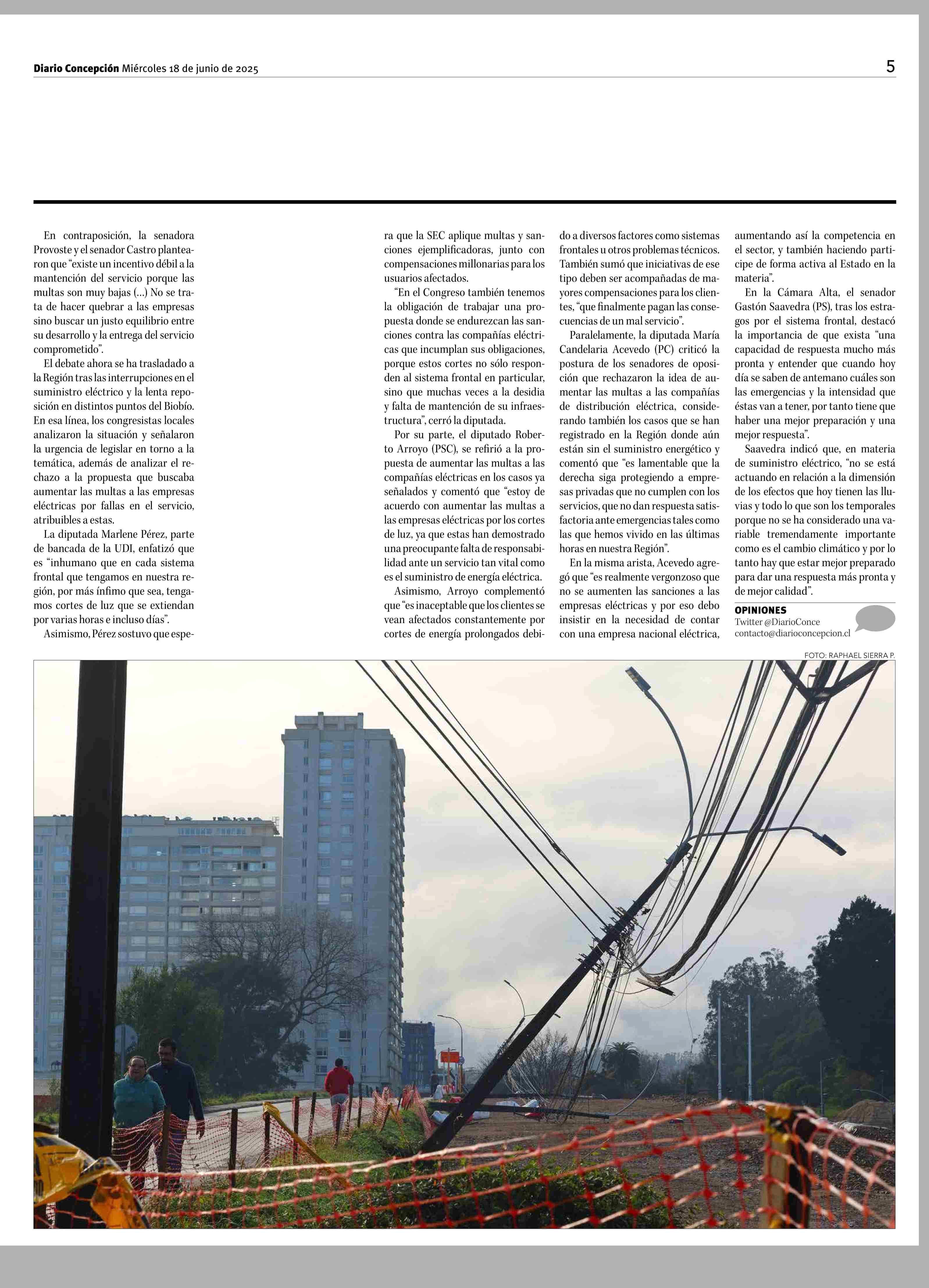 Hasta 4 días sin luz: aumento de multas a empresas eléctricas es clave para legisladores de Biobío 18-06-2025 Diario Concepción |