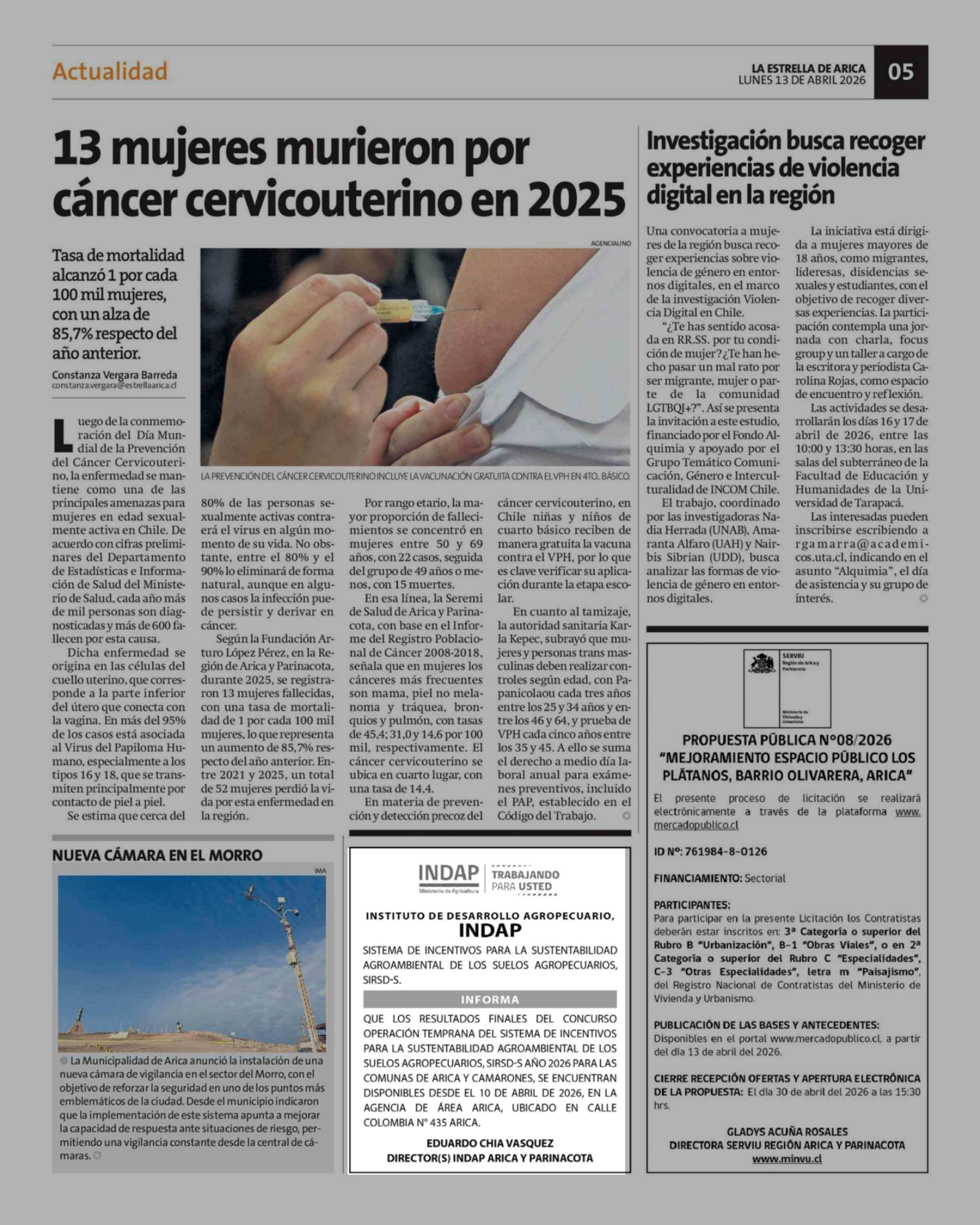 Fecha: 13-04-2026 Sector: Extractos Región: Región de Arica y Parinacota