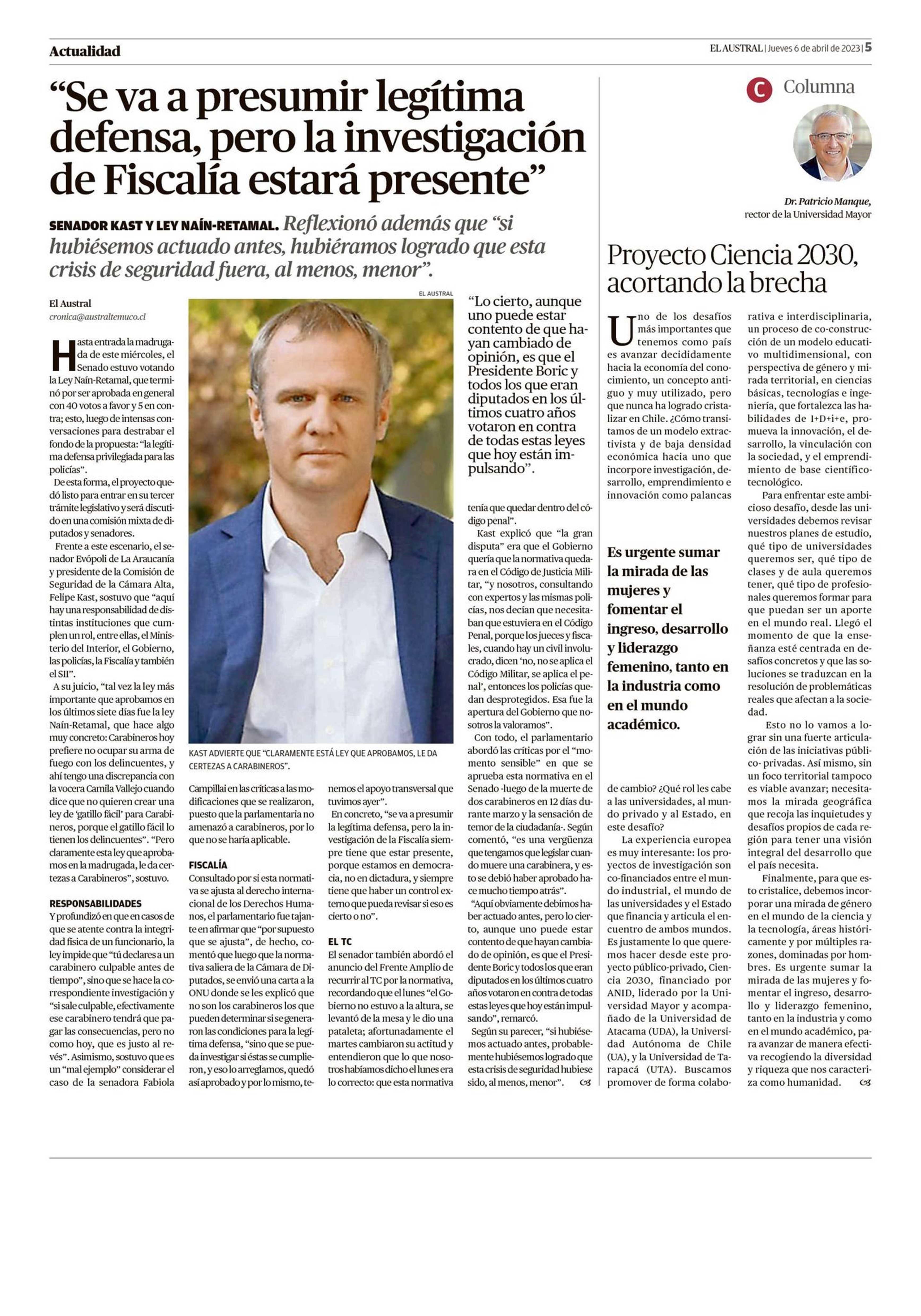 Proyecto Ciencia 2030, acortando la brecha 06-04-2023 El Austral de la Araucanía |